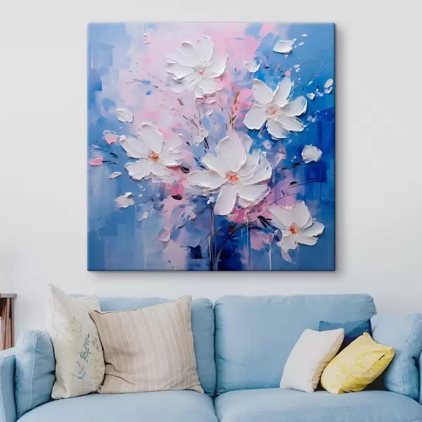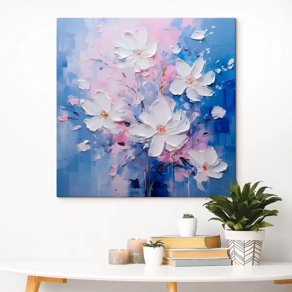 Peinture Fleurs volumétriques sur fond bleu en style empâté Art. s45648