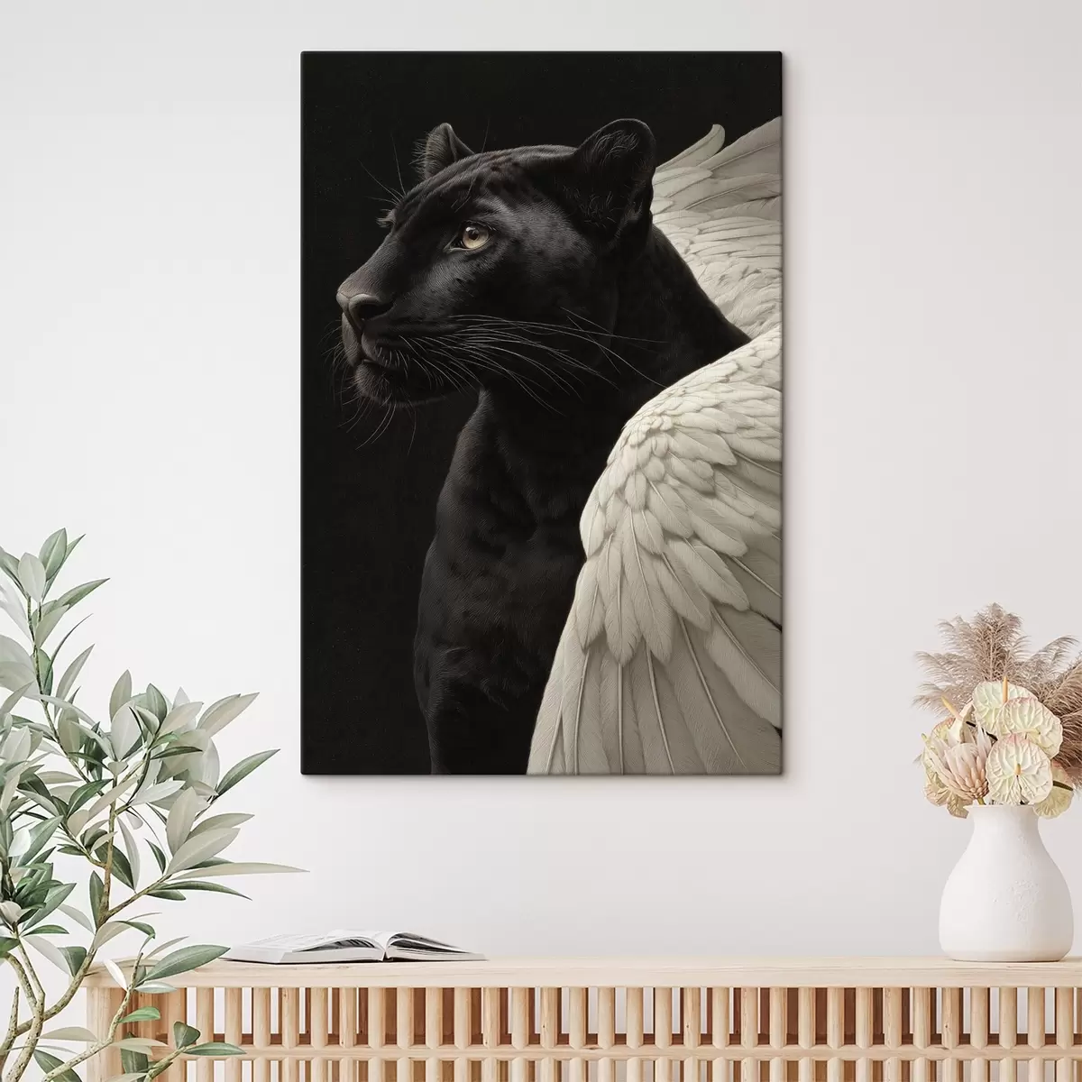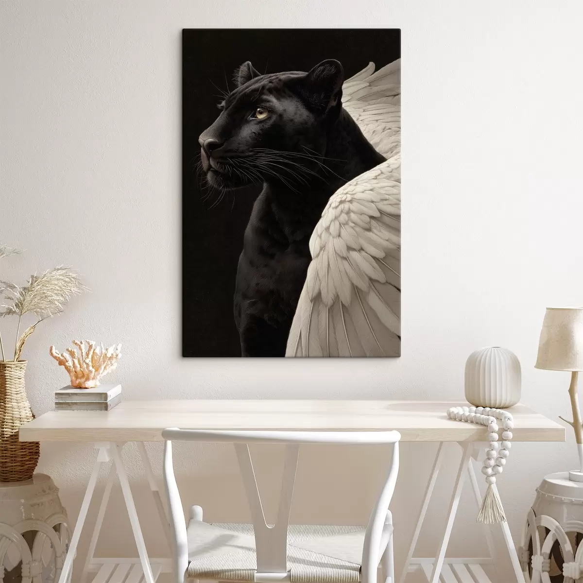 Peinture Panthère noire avec ailes dans un style fantastique Art. s45653