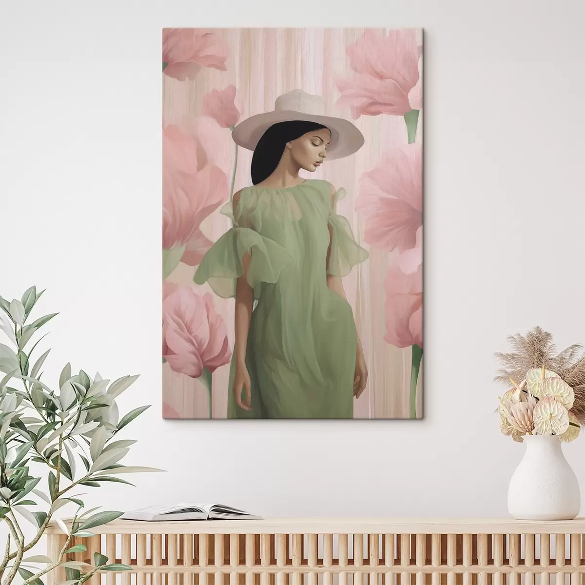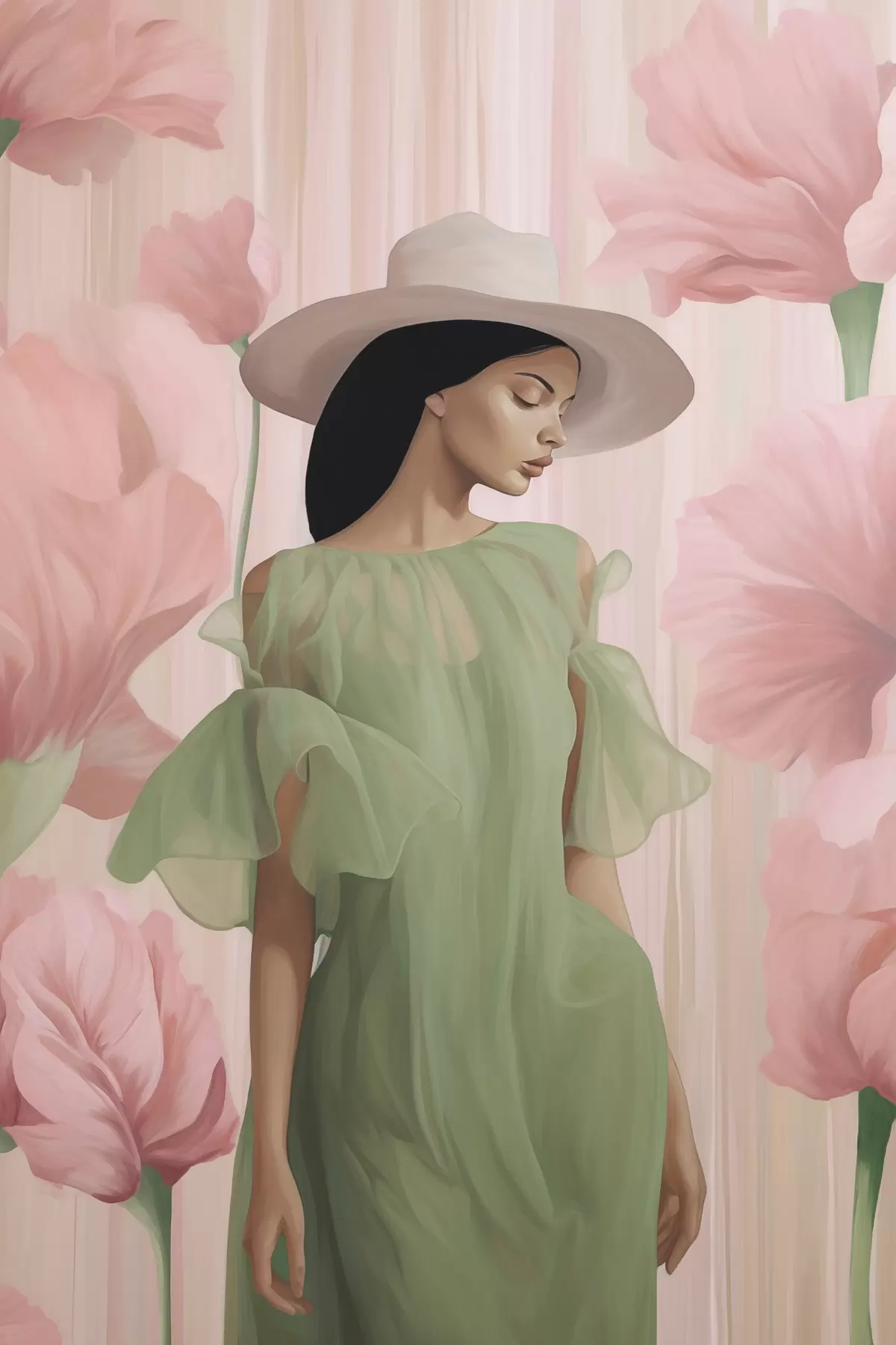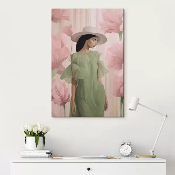 Peinture Fille au chapeau parmi les fleurs Art. s45678