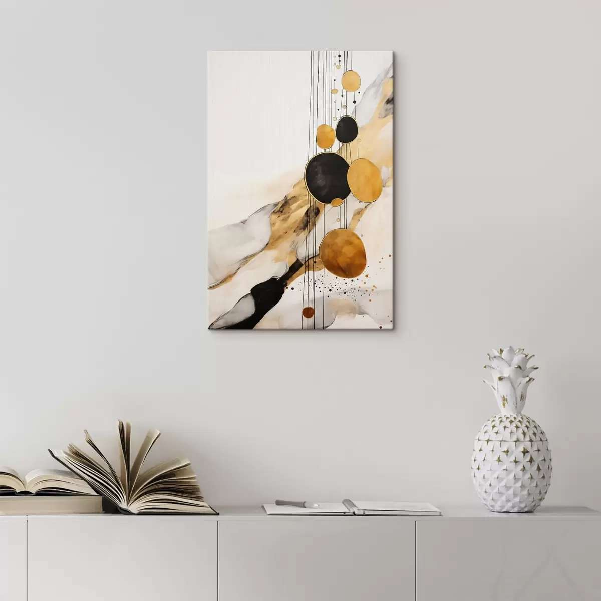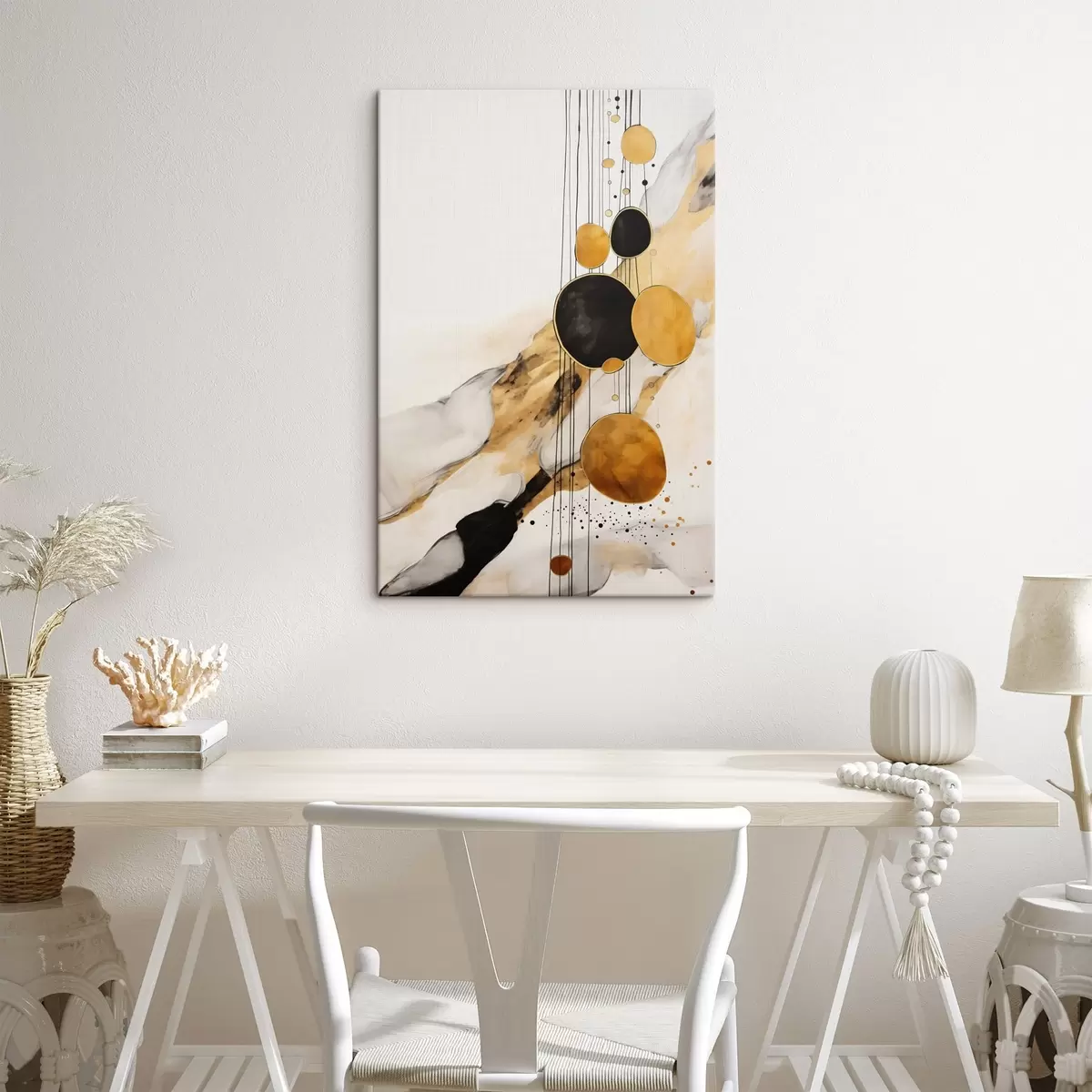 Peintures Cercles abstraits orange et noirs sur fond clair s45693