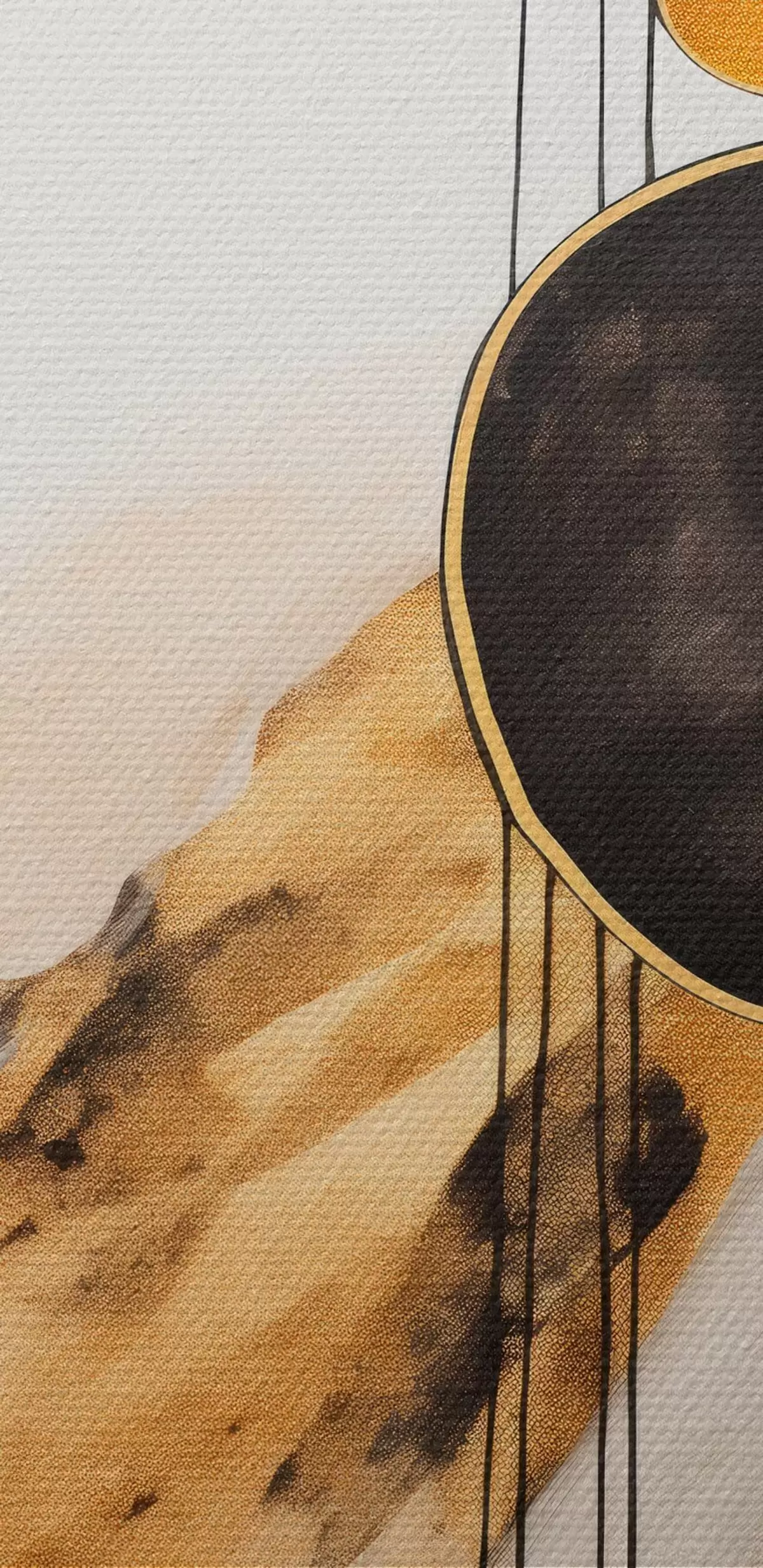 Peinture Cercles abstraits orange et noirs sur fond clair Art. s45693