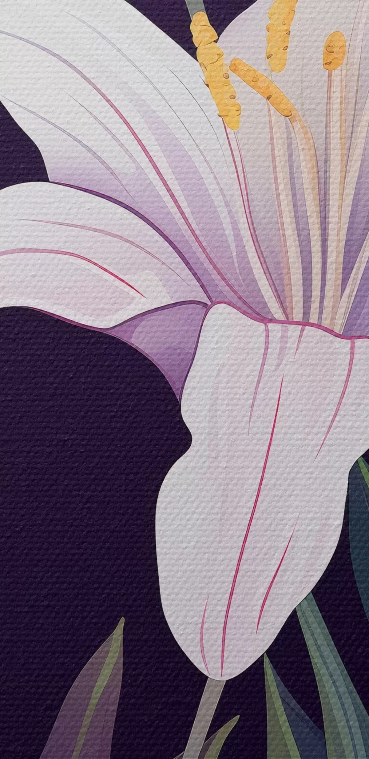 Peintures Lys délicats sur un fond sombre avec des feuilles vertes s45697