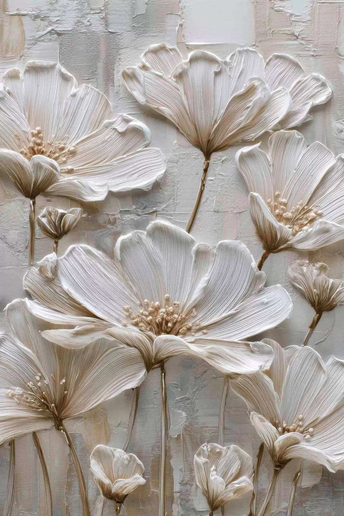 Peinture fleurs en crème avec imitation de style impasto Art. s45713