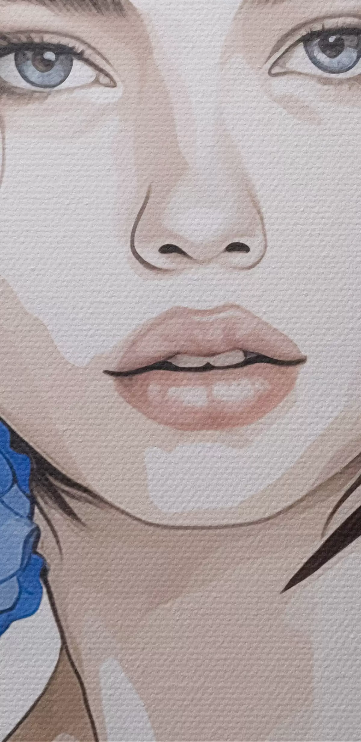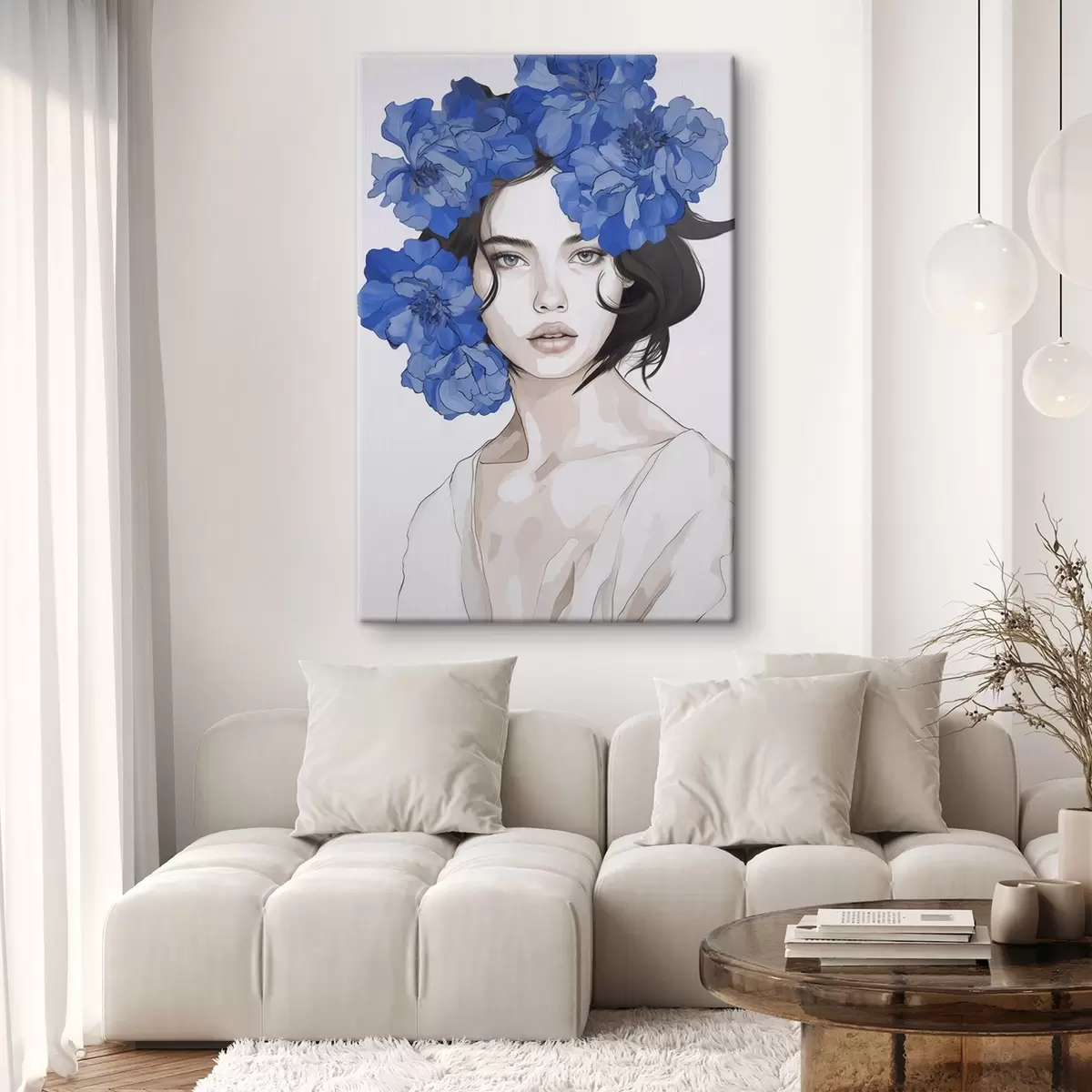 Peinture Portrait d'une jeune fille avec des fleurs bleues Art. s45756