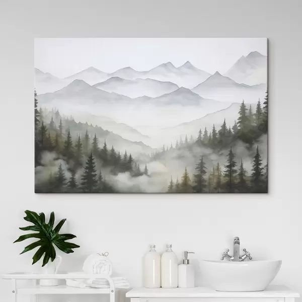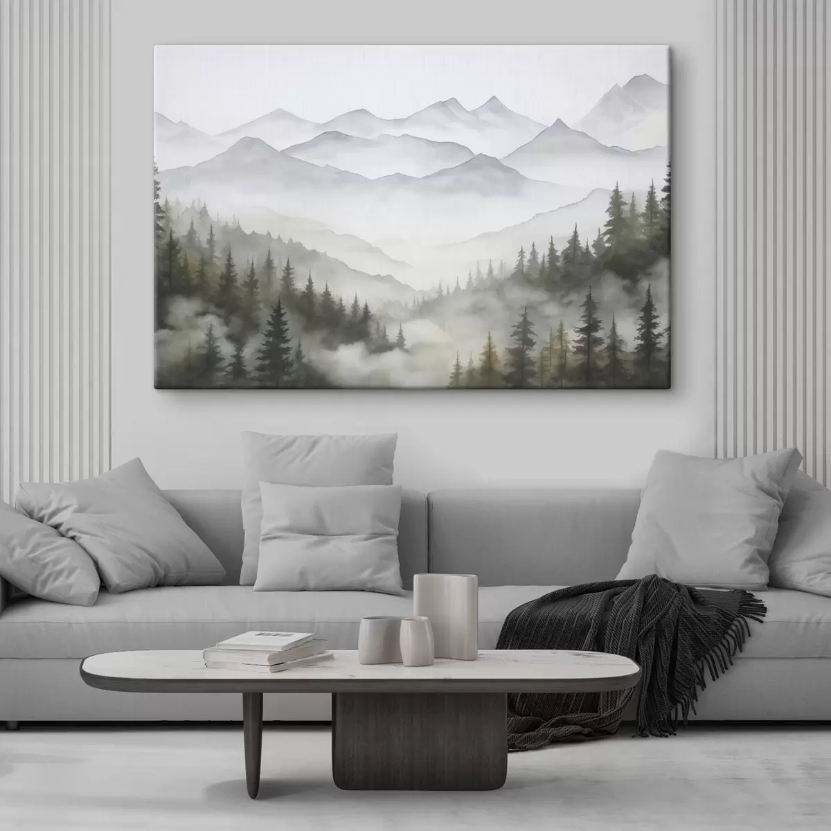 Peintures Forêt dans le brouillard devant les montagnes s45774