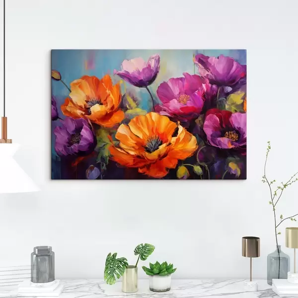 Peinture Coquelicots lumineux dans des tons violets et orange Art. s45804
