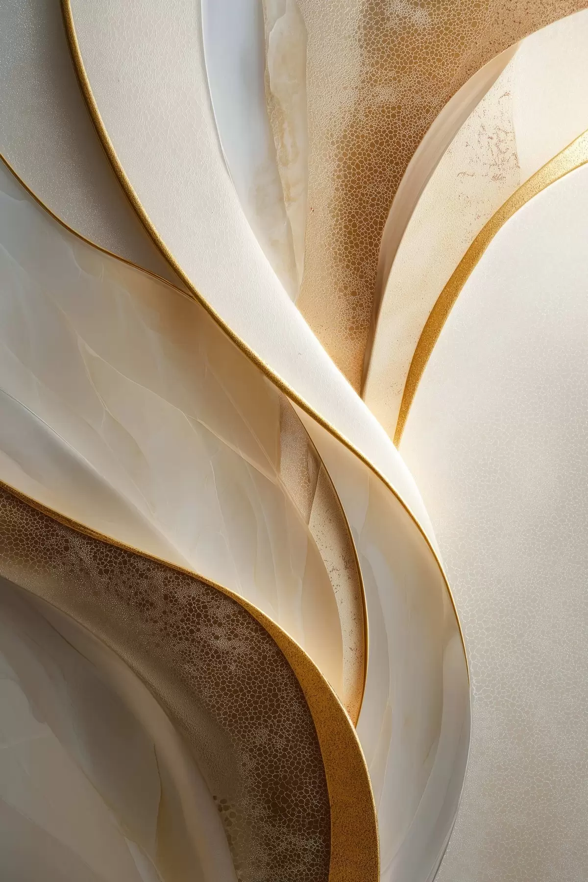 Peintures Courbes abstraites rehaussées de touches jaune-orange et beige s45807