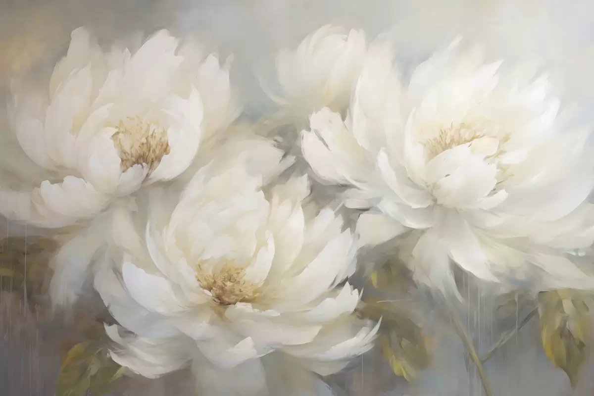 Peinture Trois pivoines blanches luxuriantes sur un fond délicat Art. s45808