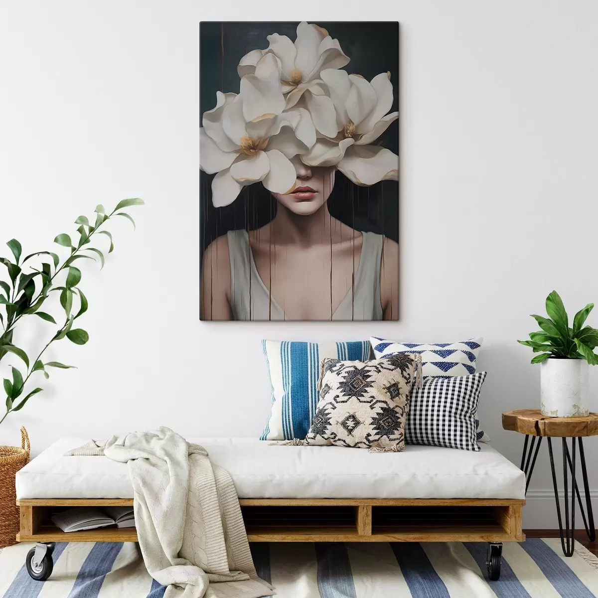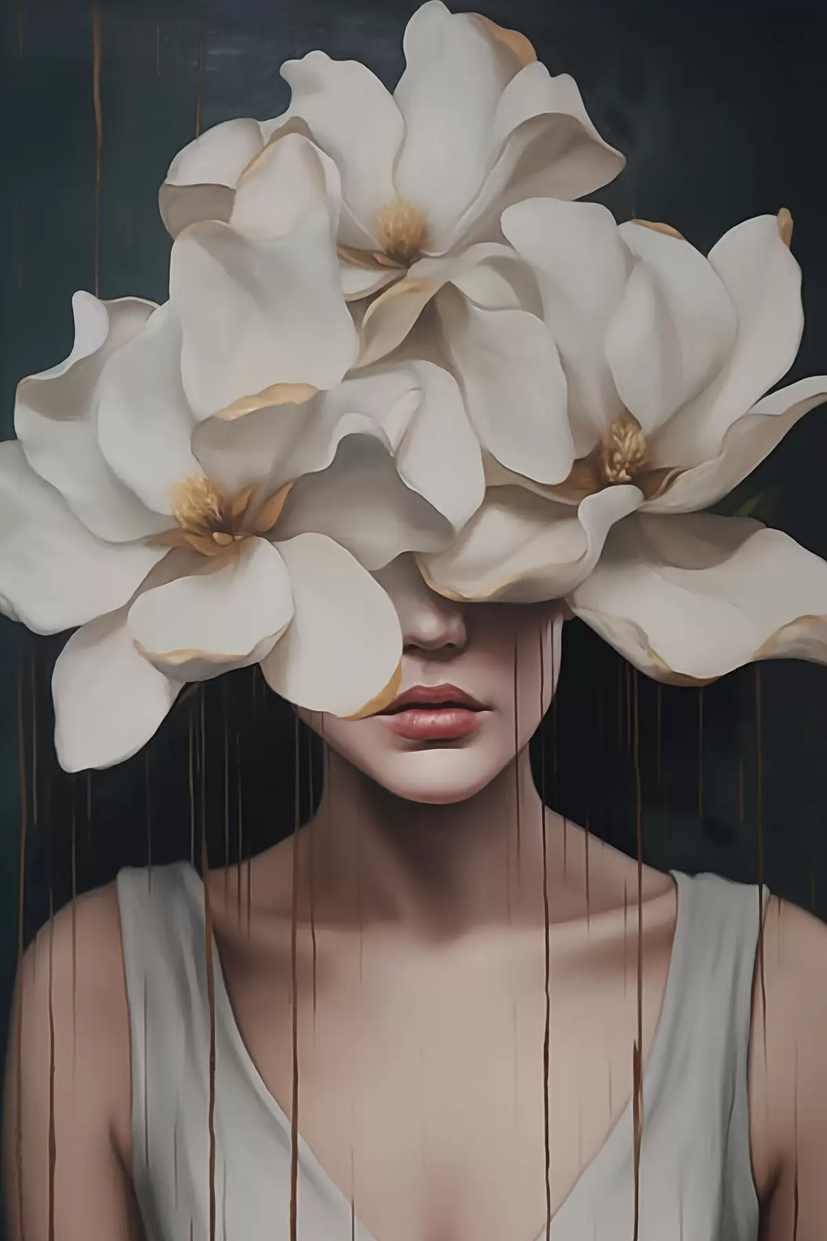 Peinture Femme avec des fleurs blanches sur la tête Art. s45843