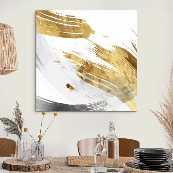 Peintures Coups dynamiques dans des tons blancs et jaune-gris s45866