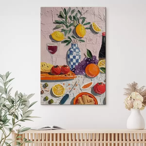 Peinture Nature morte pastel : citrons, raisins et tomates, empâtement Art. s45876