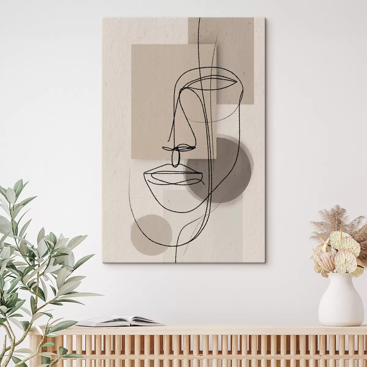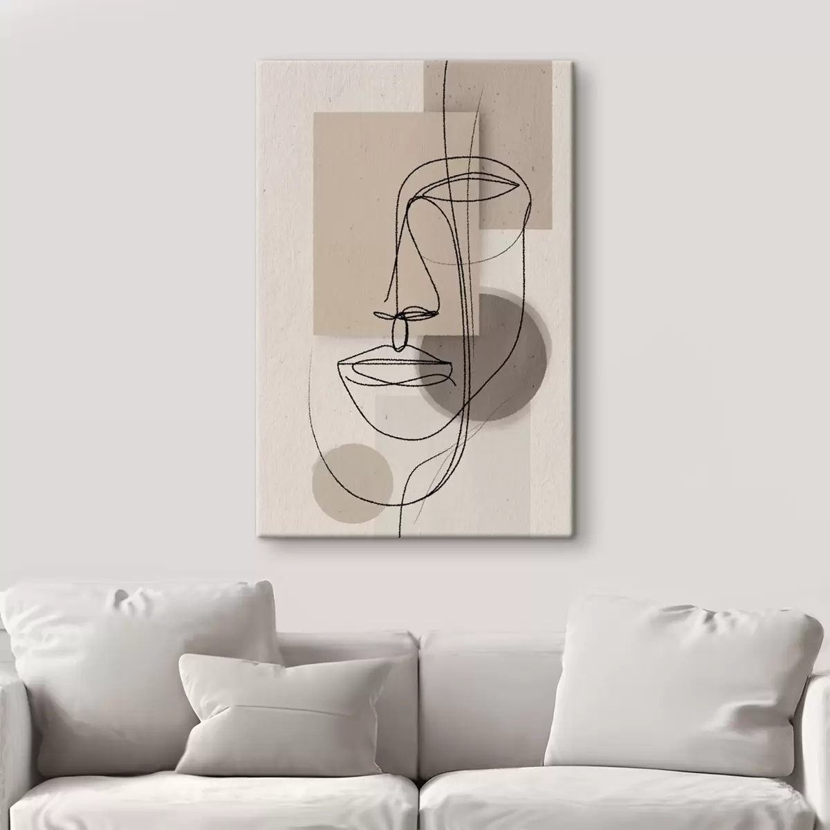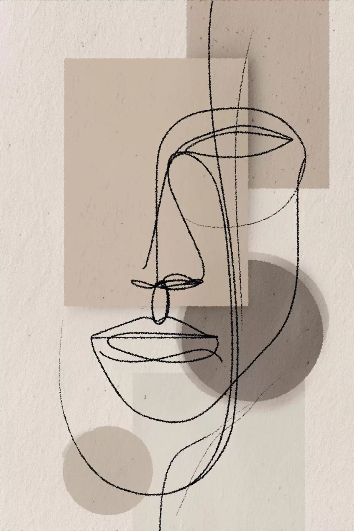 Peinture Portrait en ligne sur des formes géométriques beiges Art. s45886