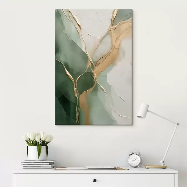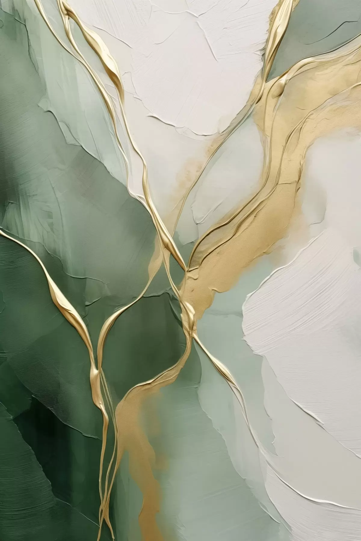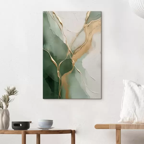 Peintures Abstraction émeraude-crème avec des ruissellements jaunes s45887