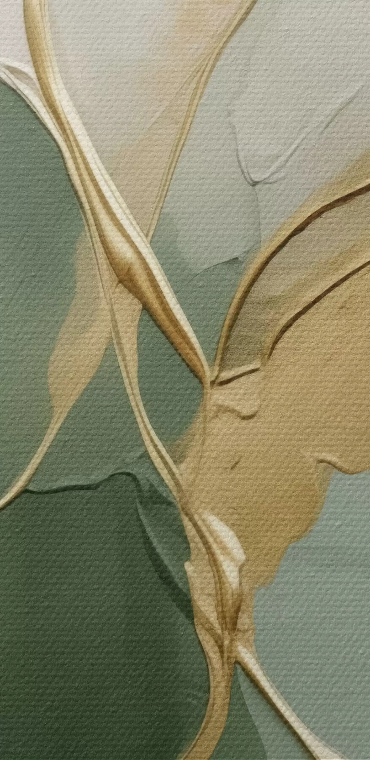 Peinture Abstraction émeraude-crème avec des ruissellements jaunes Art. s45887