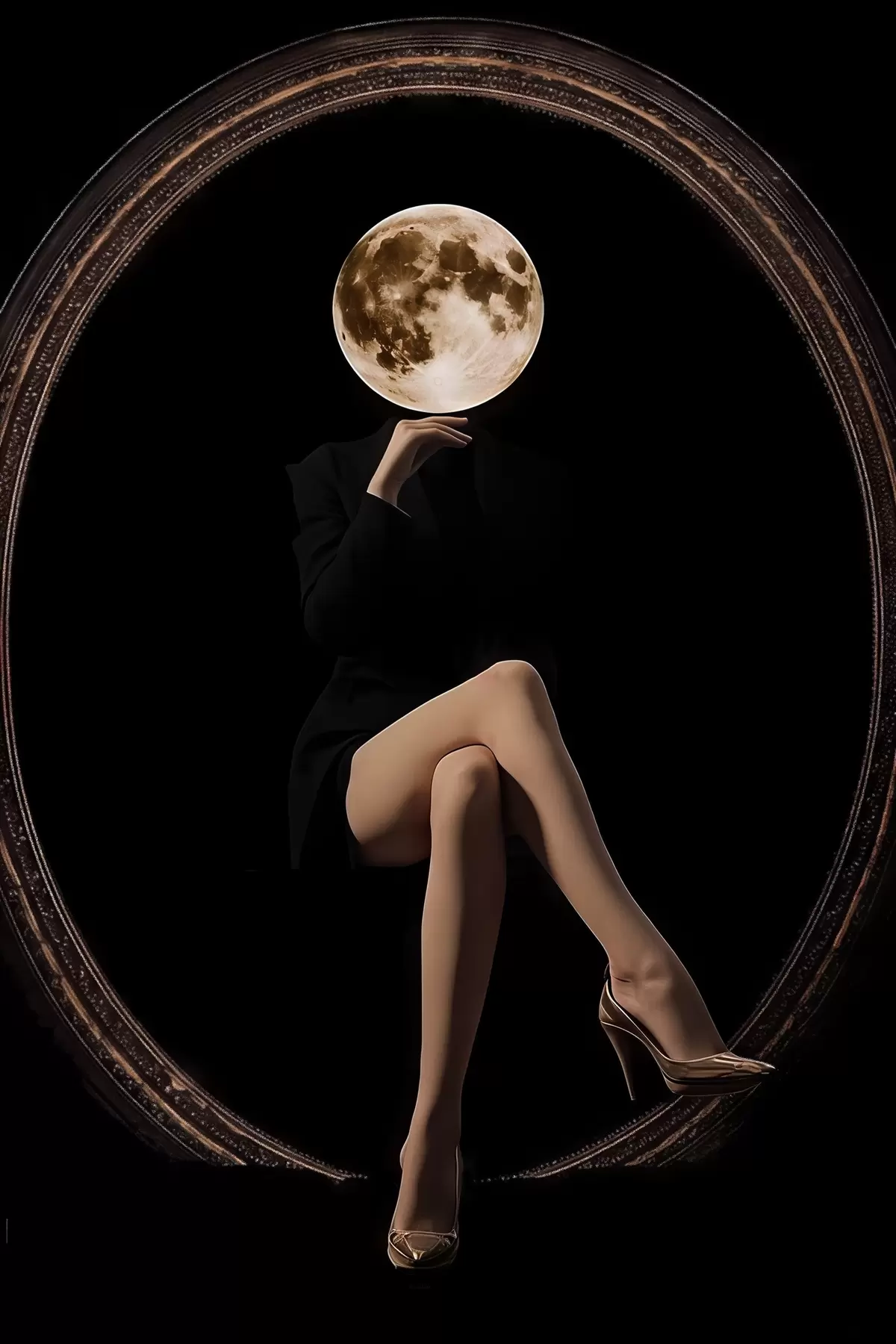 Peinture Silhouette avec la lune pour visage, minimalisme Art. s45891