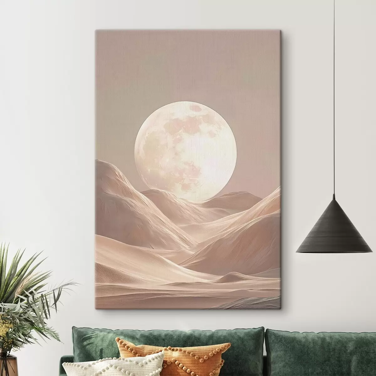 Peinture Lune au-dessus des dunes de sable aux teintes roses Art. s45892