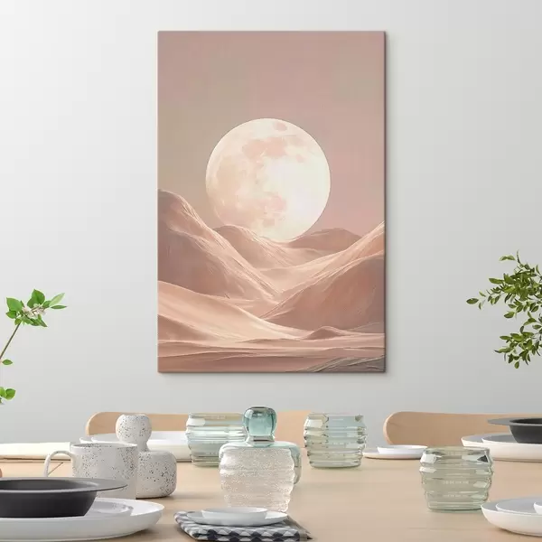Peinture Lune au-dessus des dunes de sable aux teintes roses Art. s45892