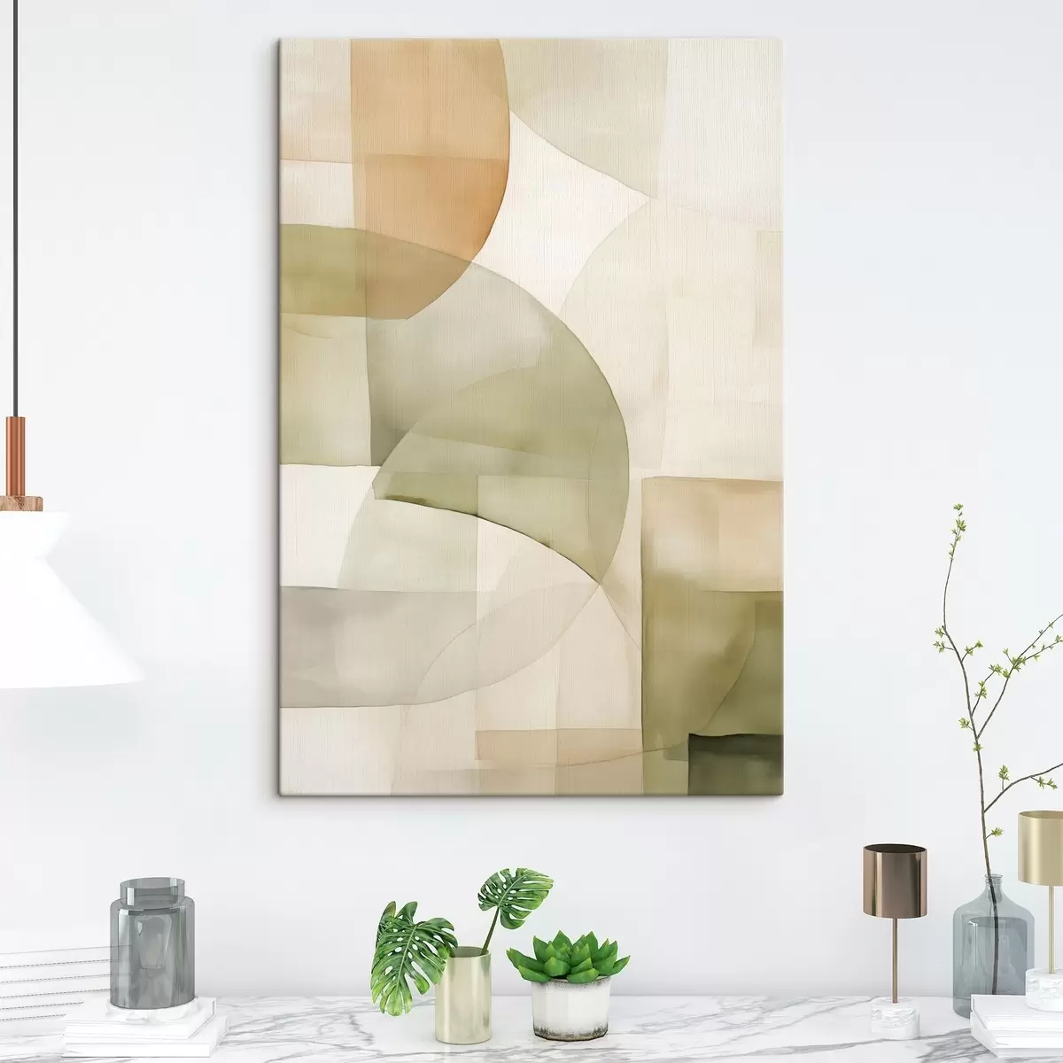 Peinture Formes géométriques abstraites texturées à l'aquarelle dans des tons de vert, marron et beige Art. s45929