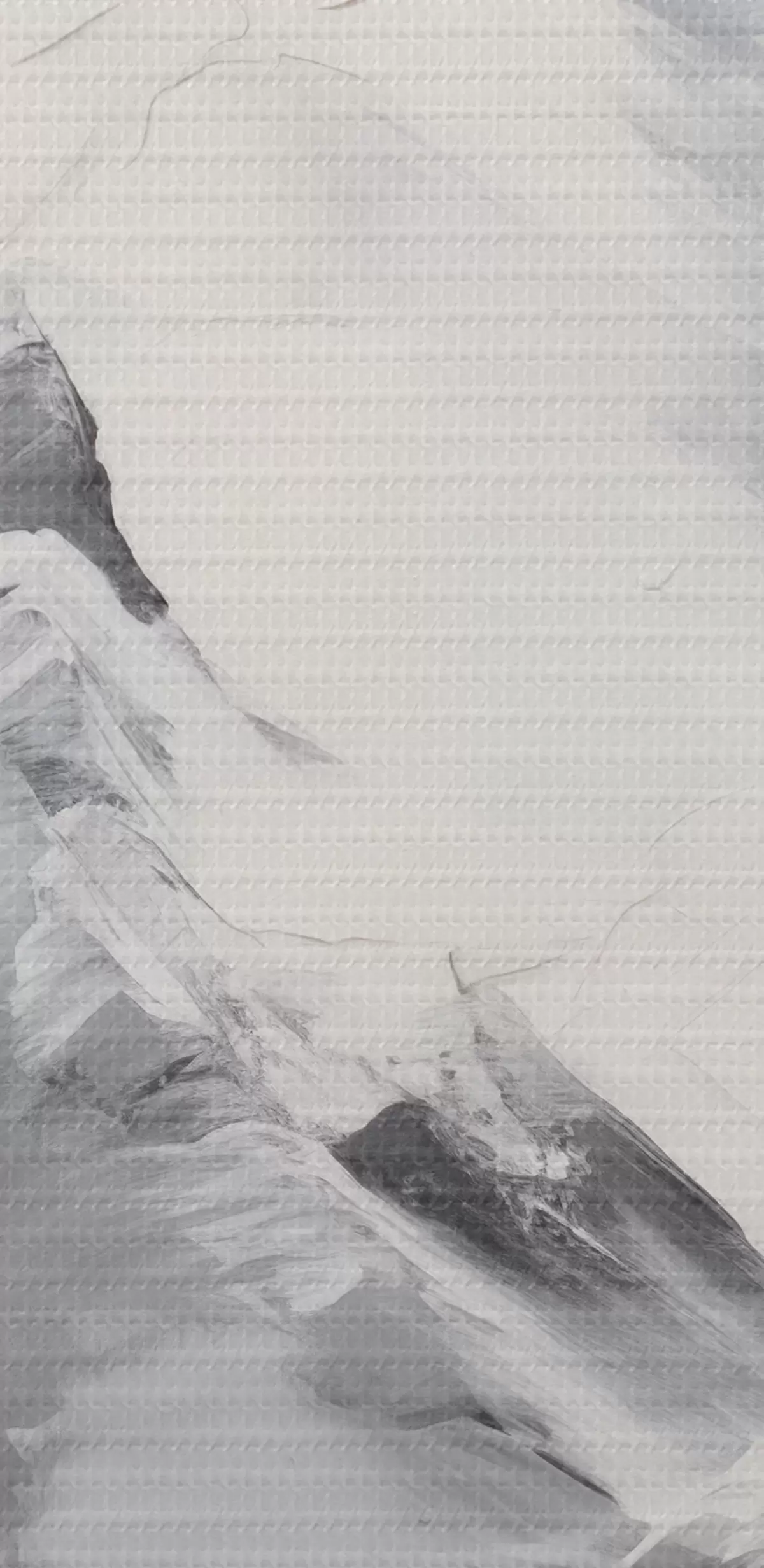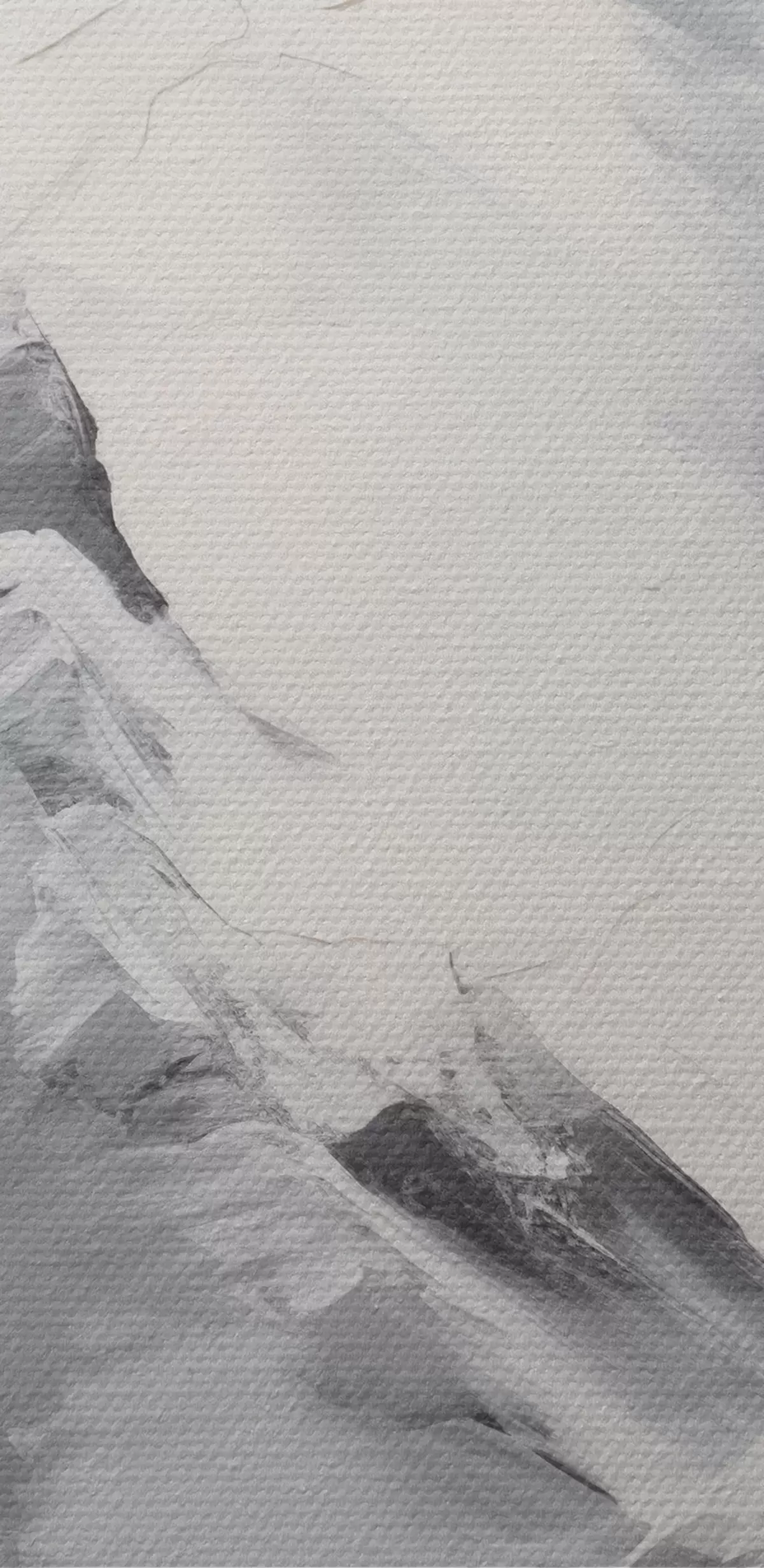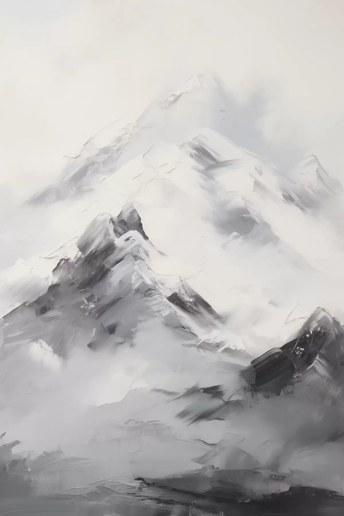 Peintures Sommets enneigés avec des ombres grises, ciel gris, coups de pinceau, texturé, minimaliste s45933