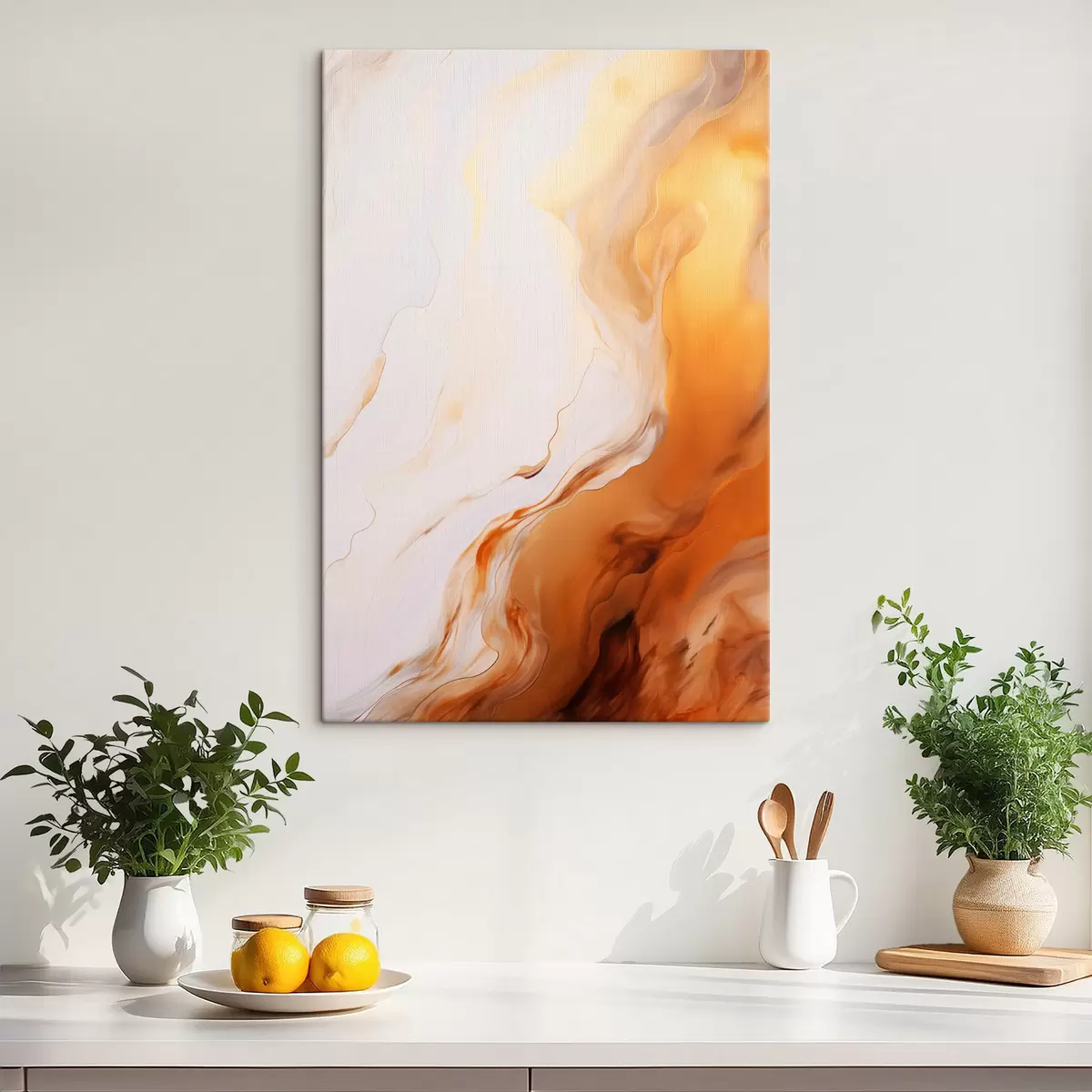 Peinture Imitation de peinture abstraite avec des couleurs blanches et orange, art fluide avec des lignes ondulées, art moderne Art. s45939