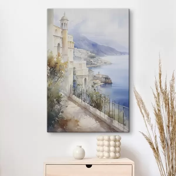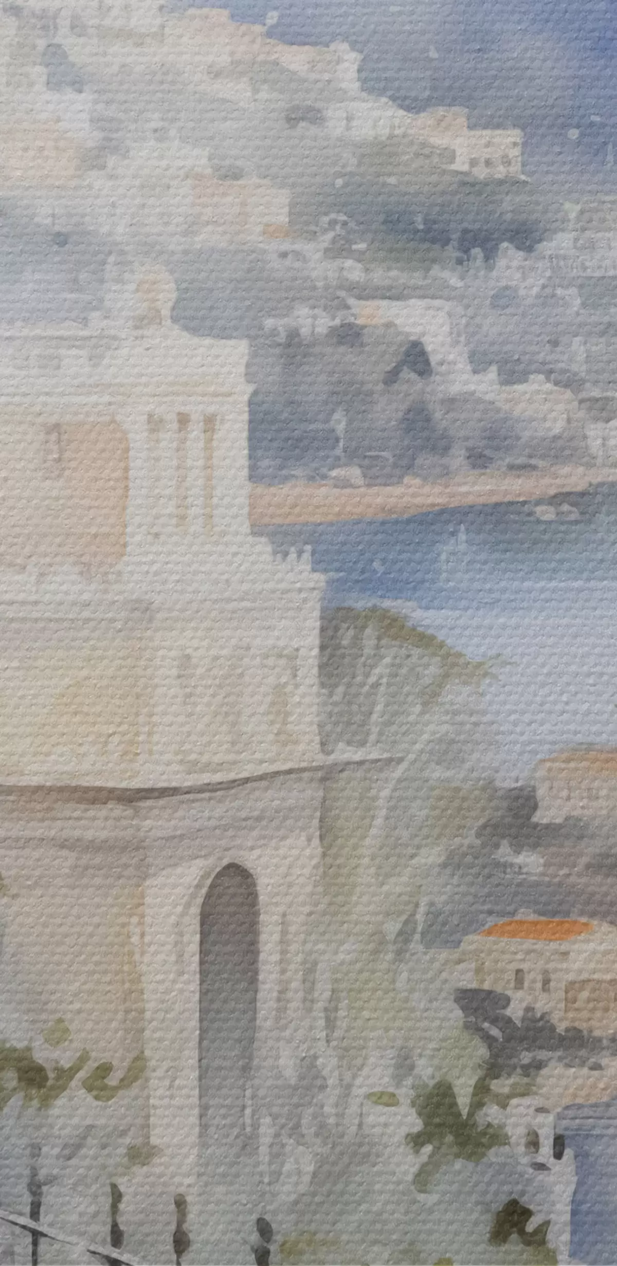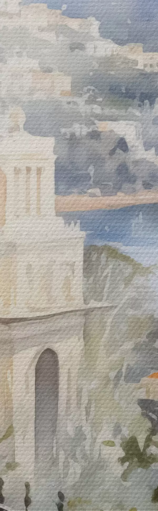 Peinture Baie près de la ville imitation aquarelle Art. s45979