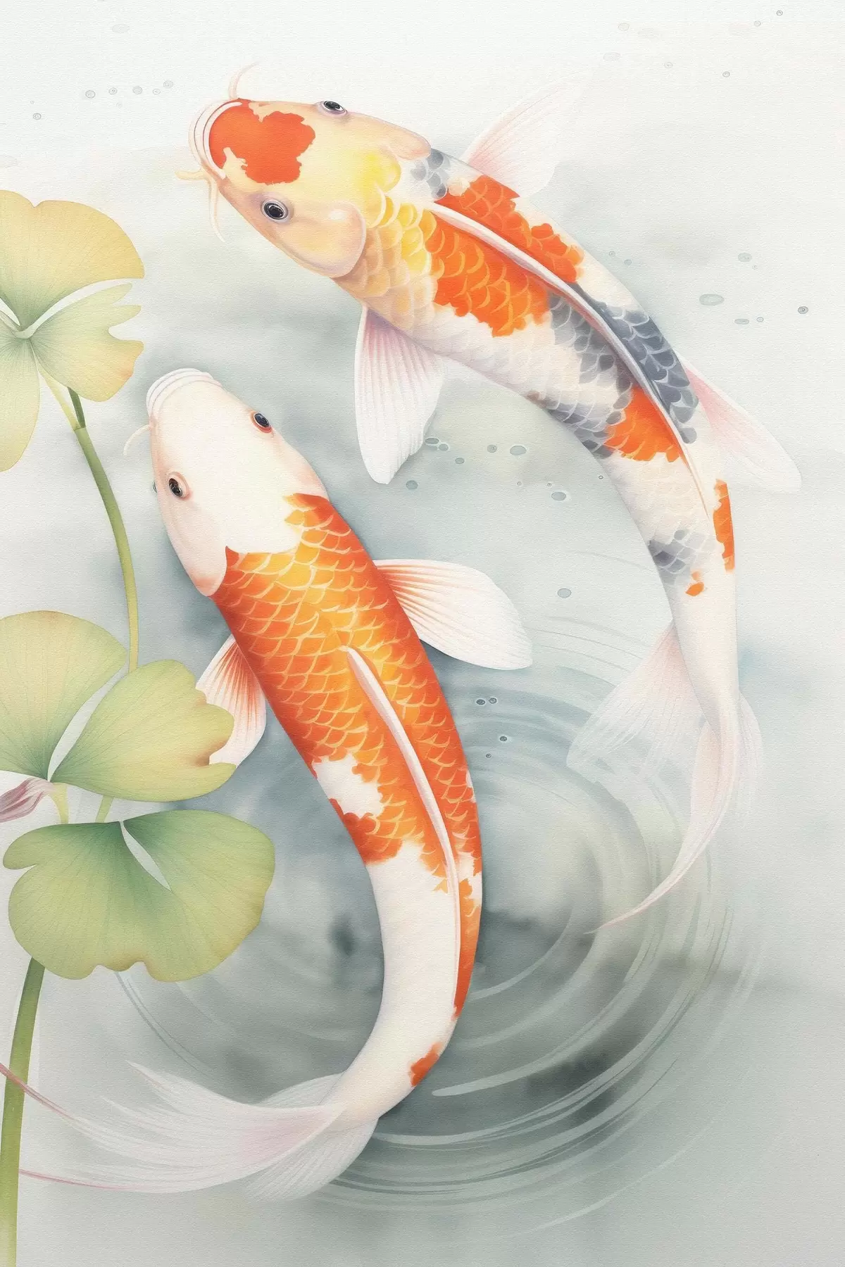 Peinture Deux magnifiques poissons dans un étang Art. s46086