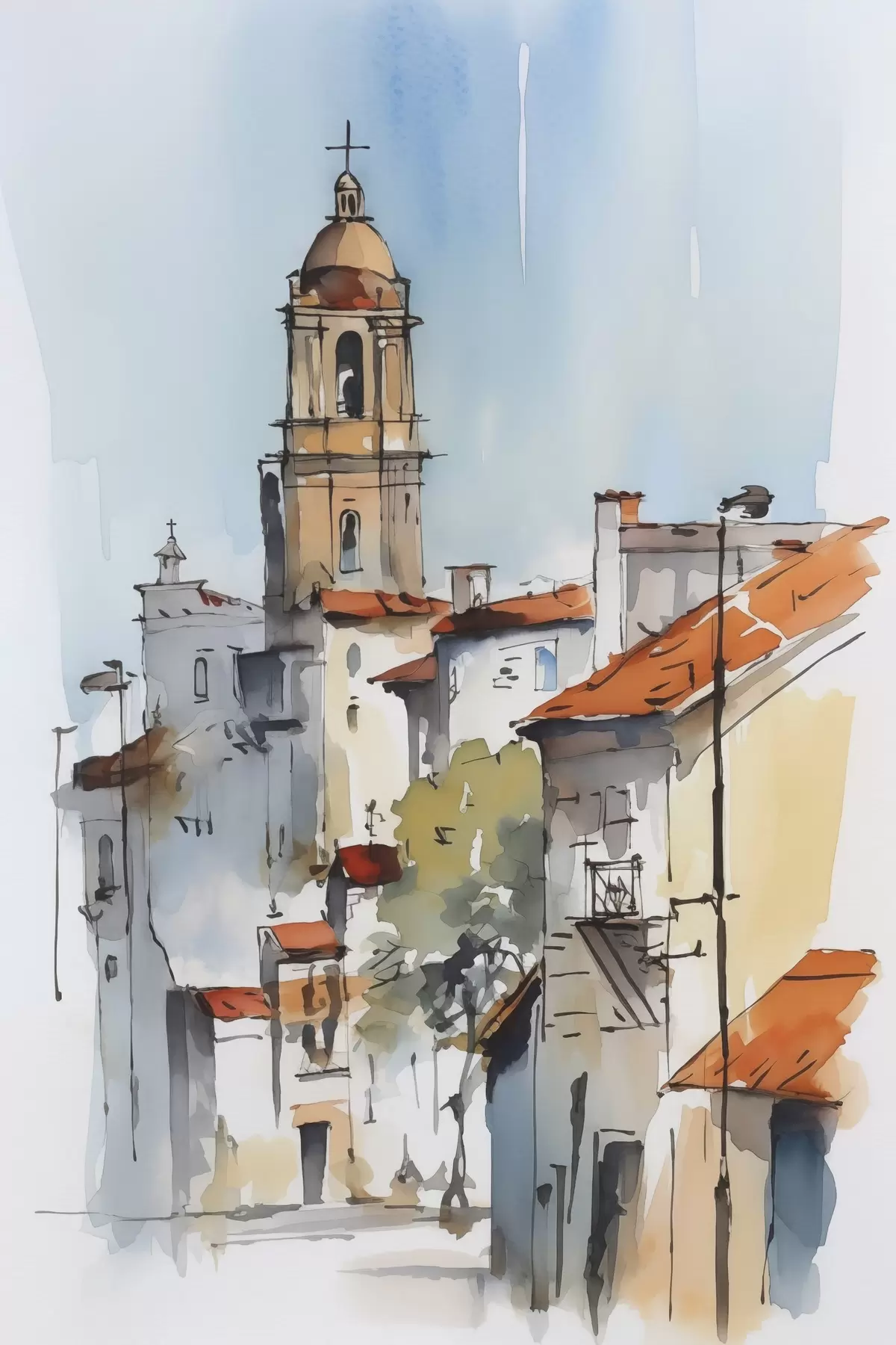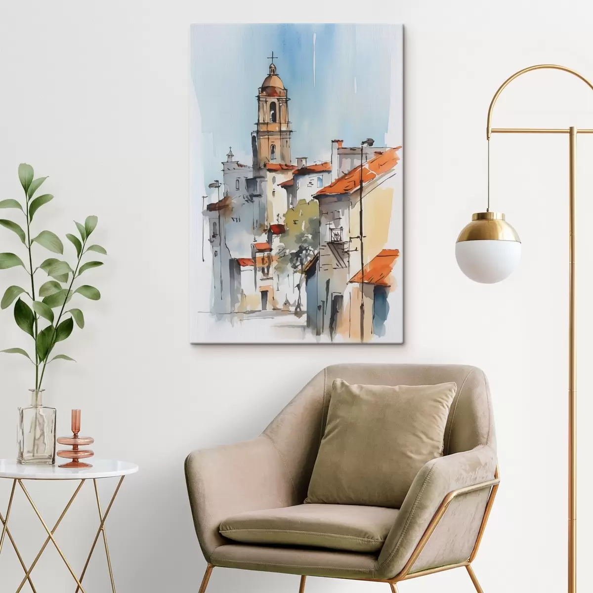 Peinture Aquarelle imitant un paysage urbain Art. s46120