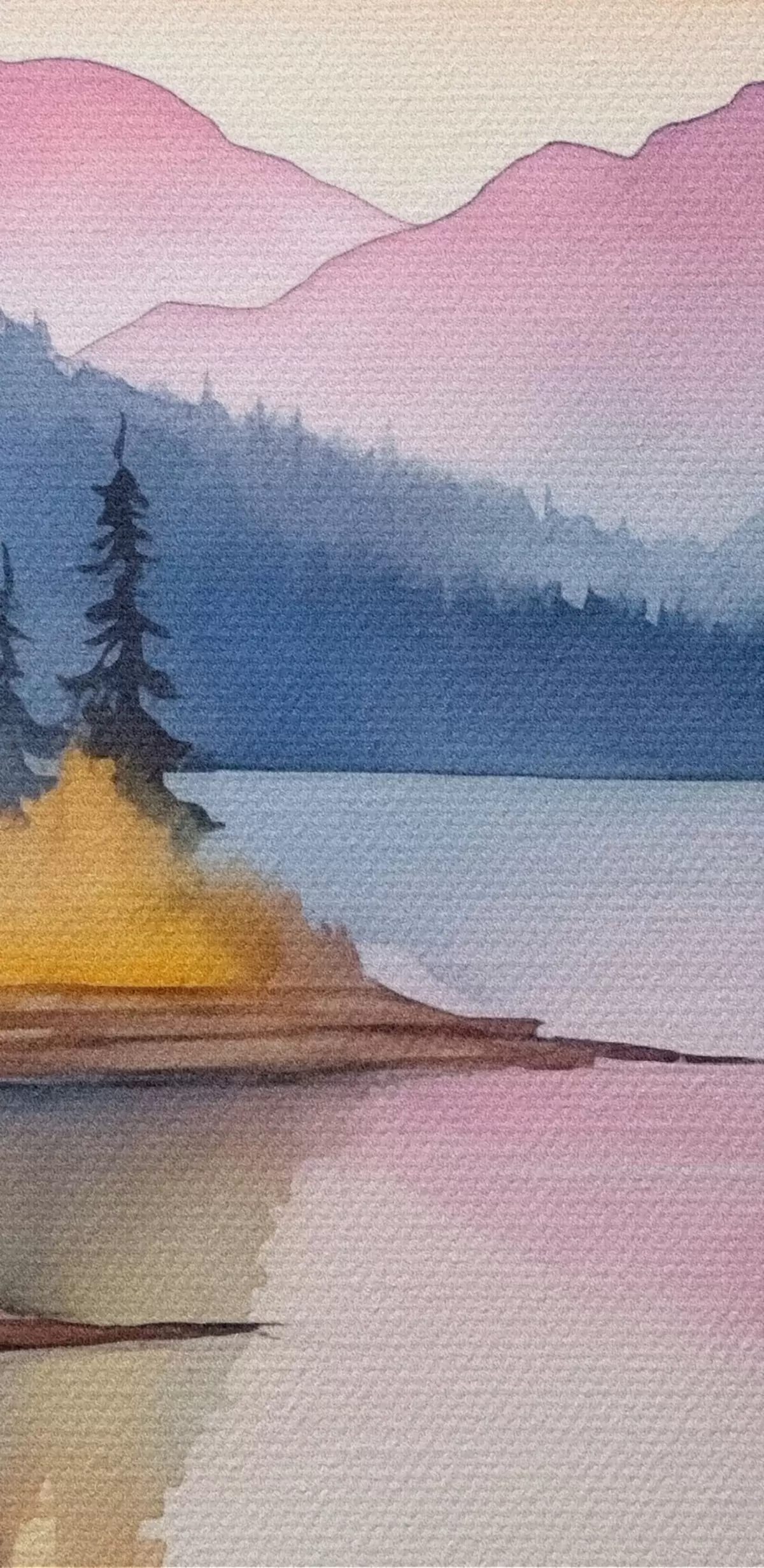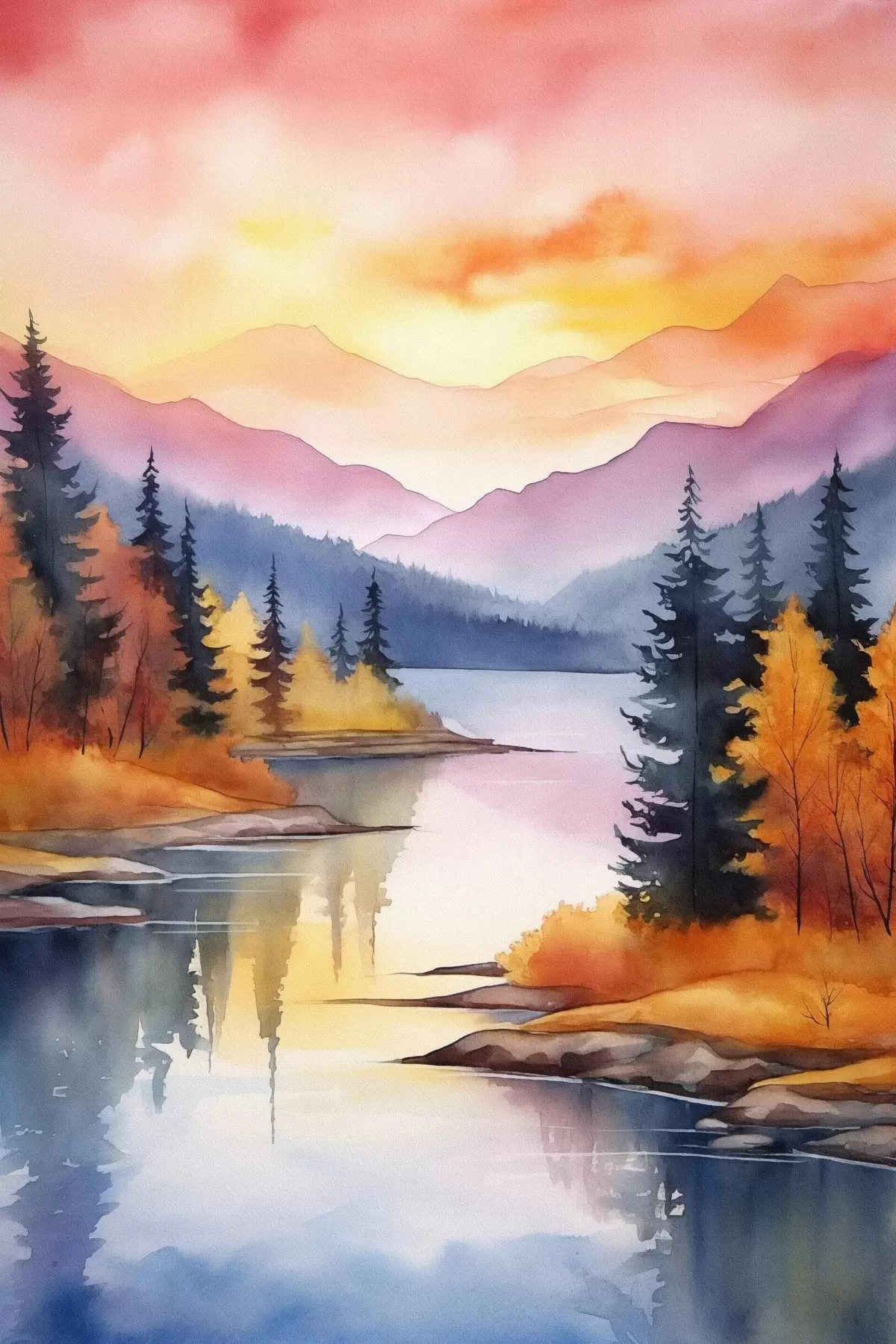 Peinture Paysage automnal au bord du lac avec un ciel lumineux Art. s46155