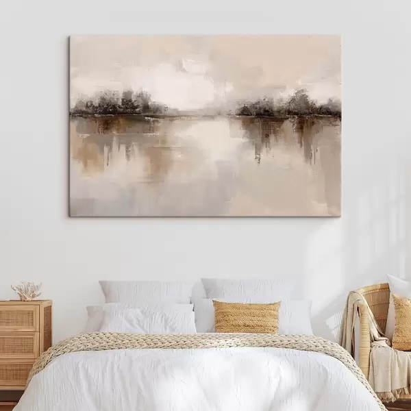Peintures Paysage doux avec un lac dans des tons chauds beige-gris s46158