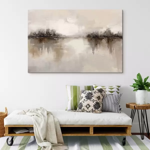 Peintures Paysage doux avec un lac dans des tons chauds beige-gris s46158
