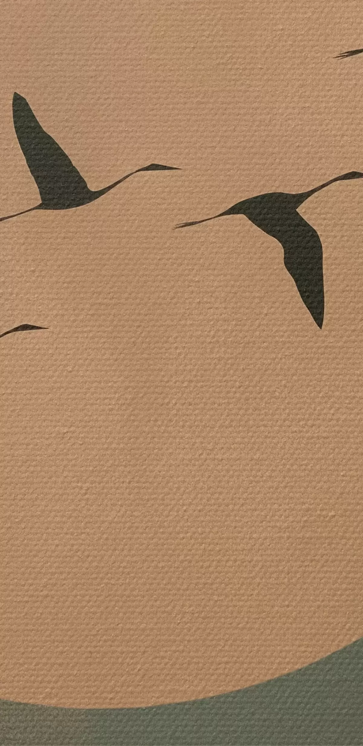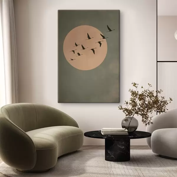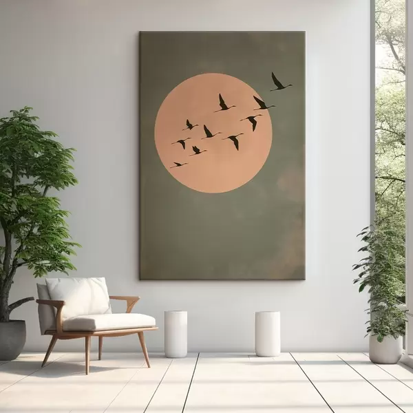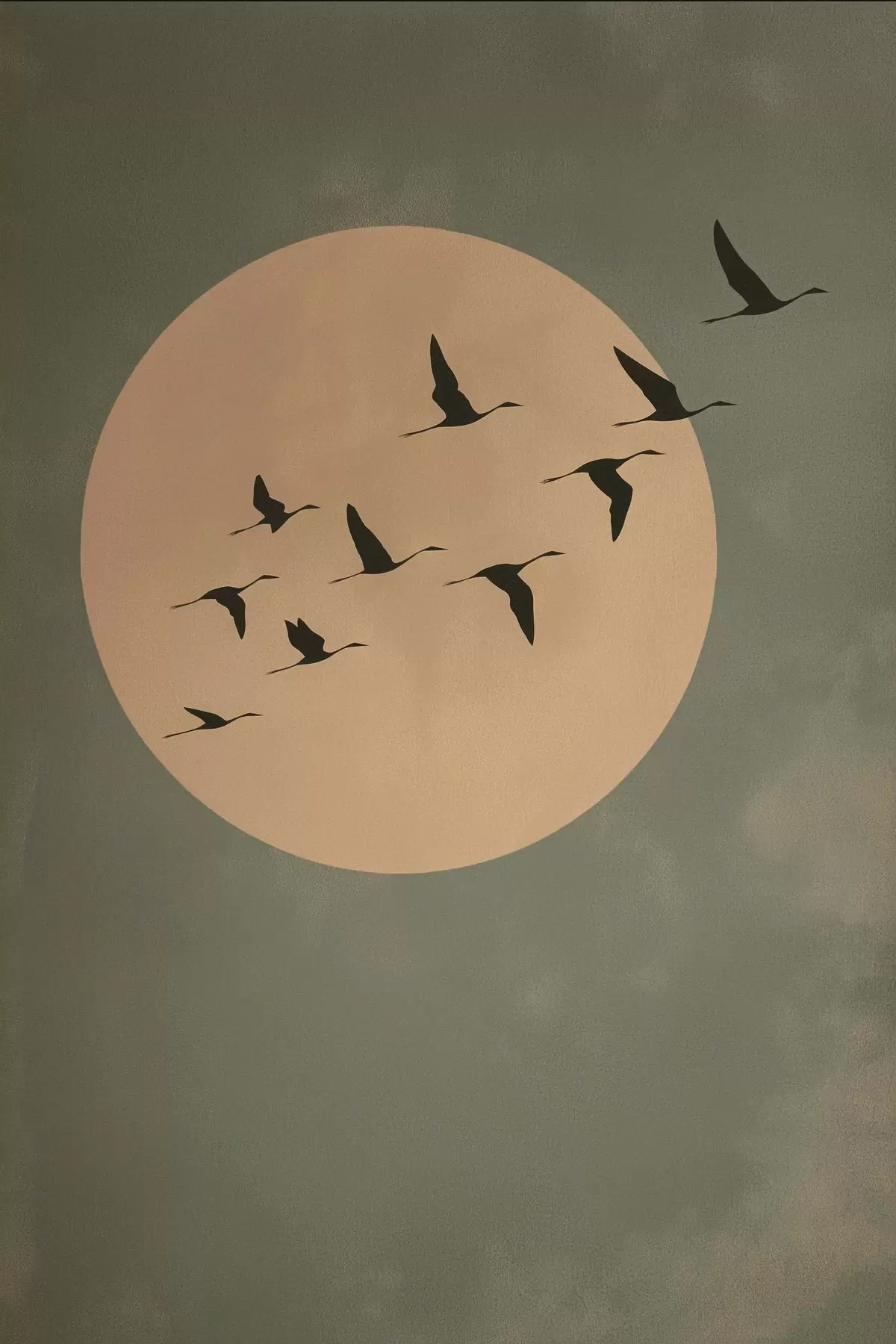 Peinture Une volée d'oiseaux volant devant une grande lune chaude Art. s46162
