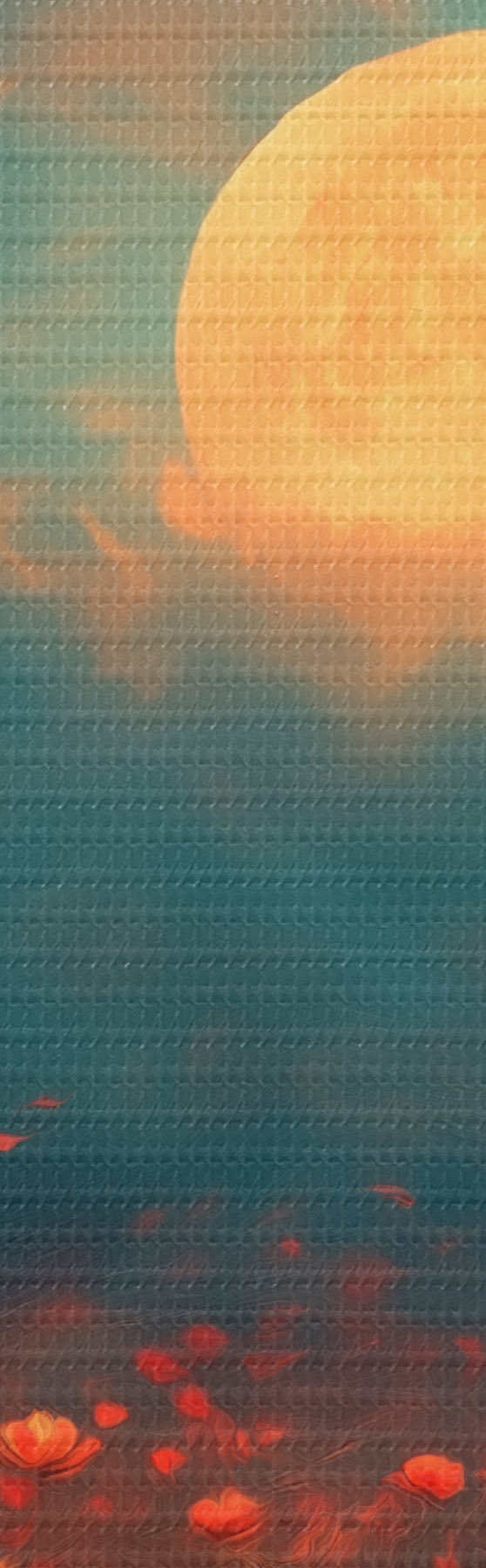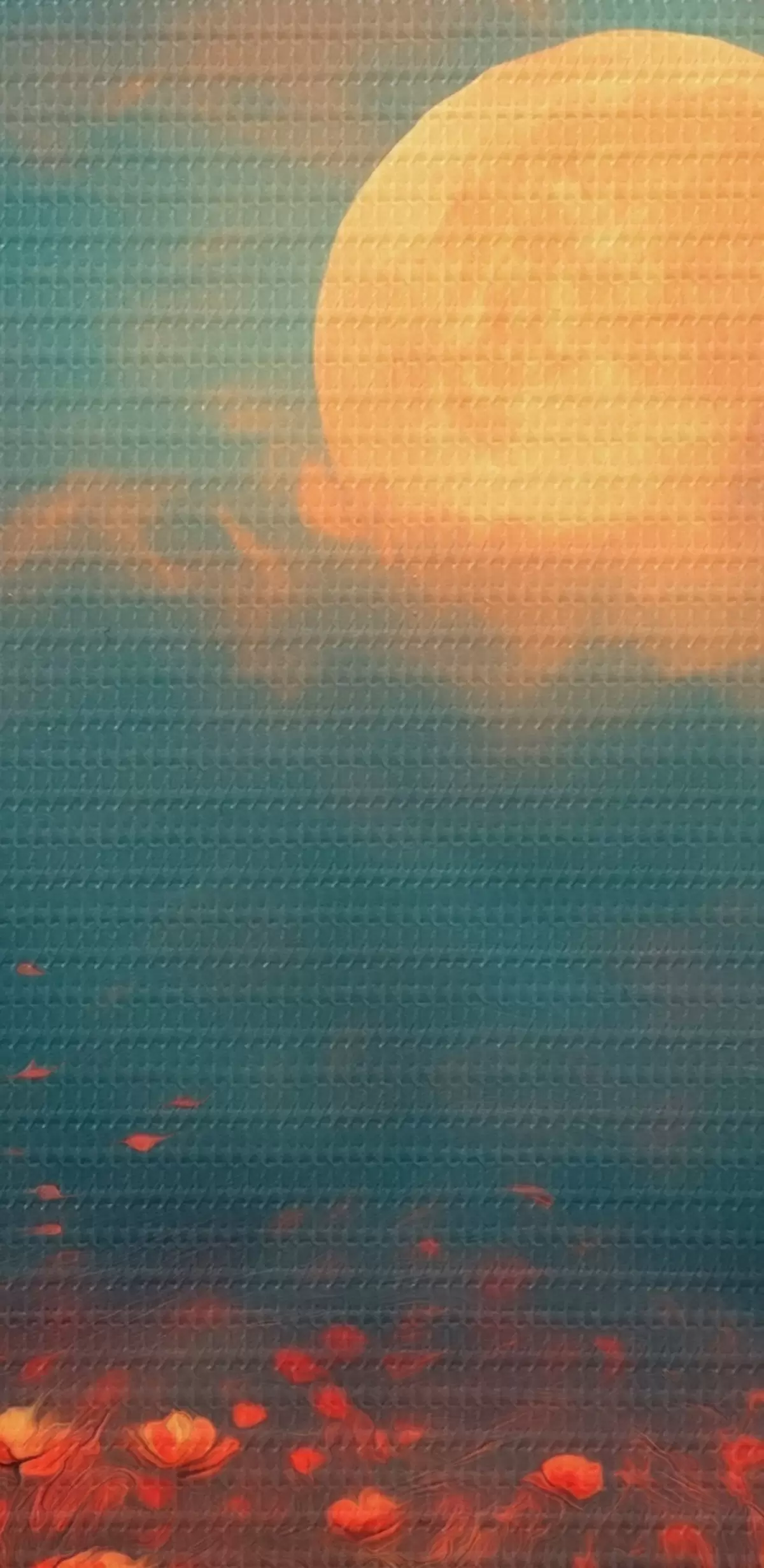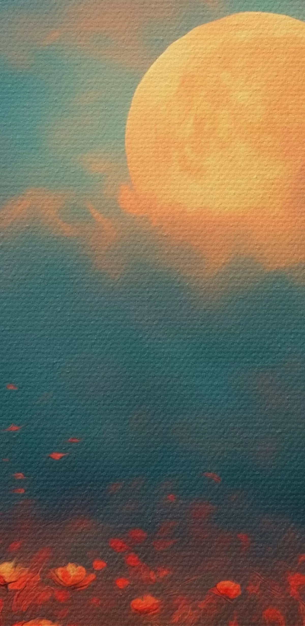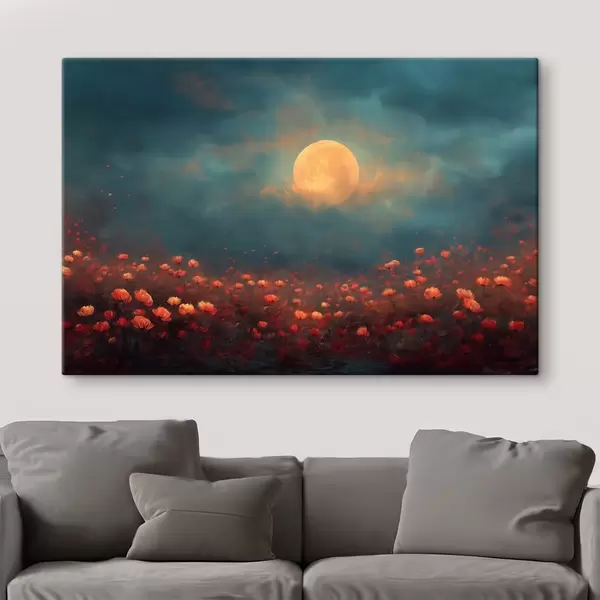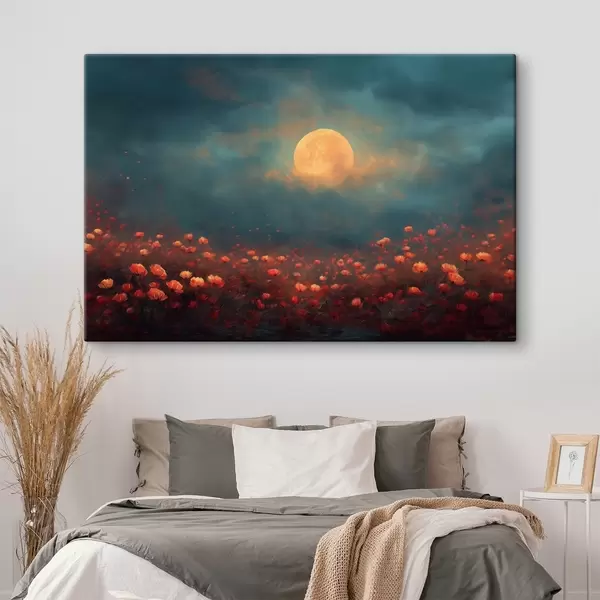 Peinture Lune au-dessus d'un champ de fleurs rouges dans un ciel brumeux au crépuscule Art. s46167