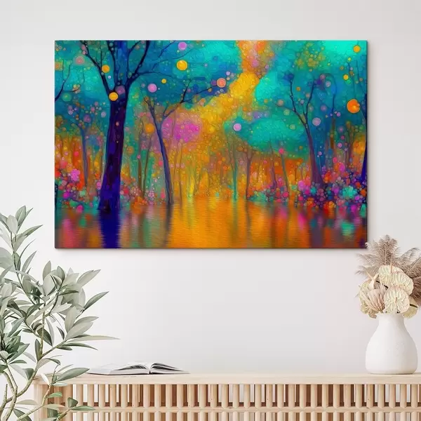 Peinture Forêt fantastique aux couleurs vives avec reflets dans l'eau Art. s46171