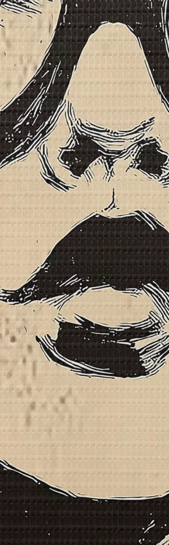 Pour tendre la toile sur des châssis sans endommager l'image, nous utilisons une image miroir.