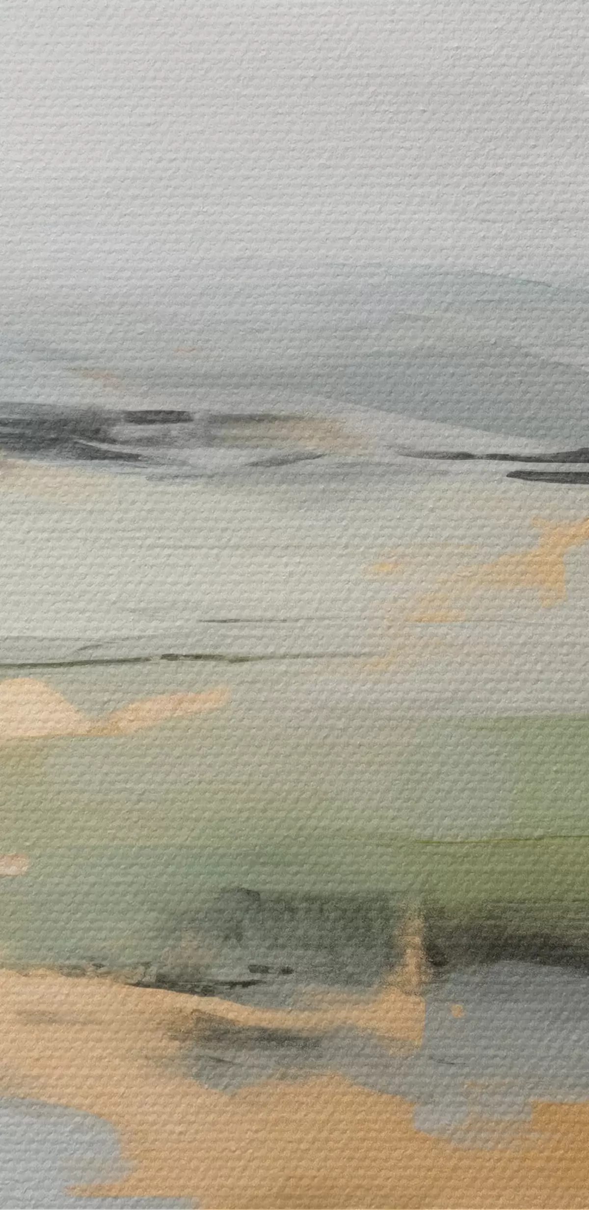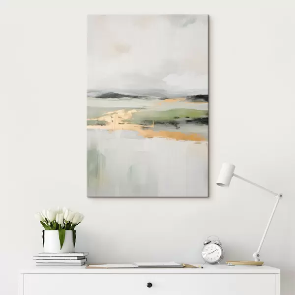 Peinture Paysage abstrait avec des accents jaunes, une composition minimaliste de terre, d'eau et de ciel, avec des couleurs douces Art. s46269