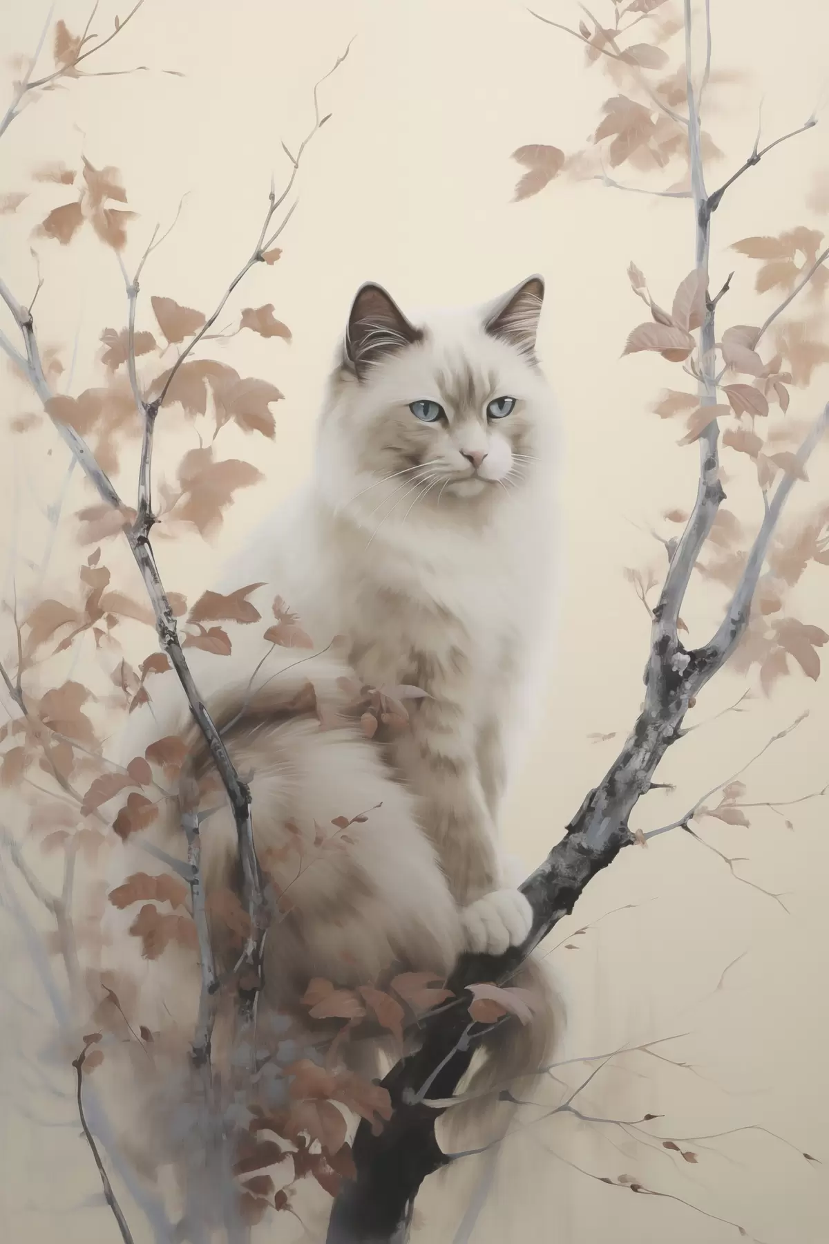 Peinture Le chat est assis sur un arbre Art. s46301