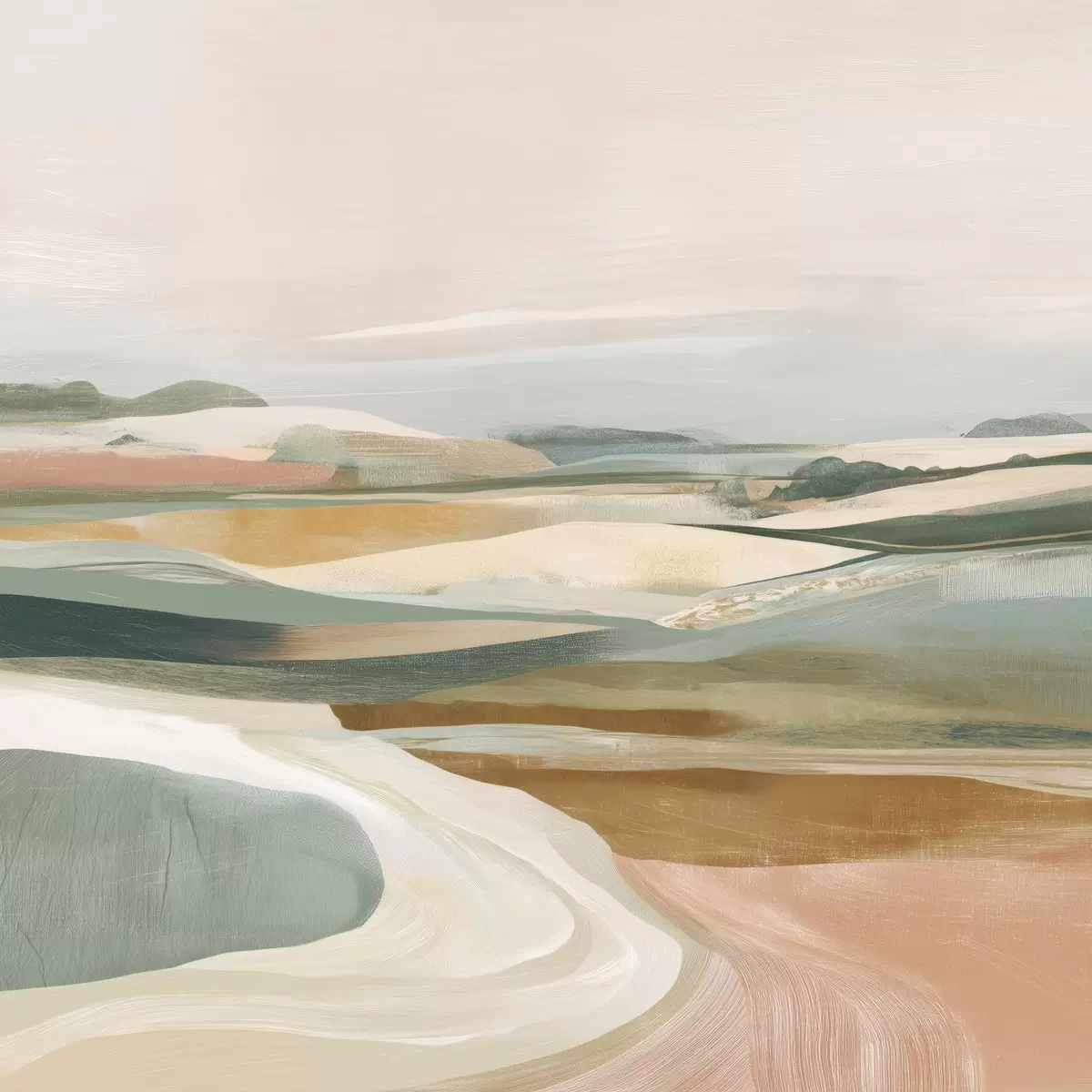 Peinture Vue champêtre avec champs et route dans un style aquarelle Art. s46317
