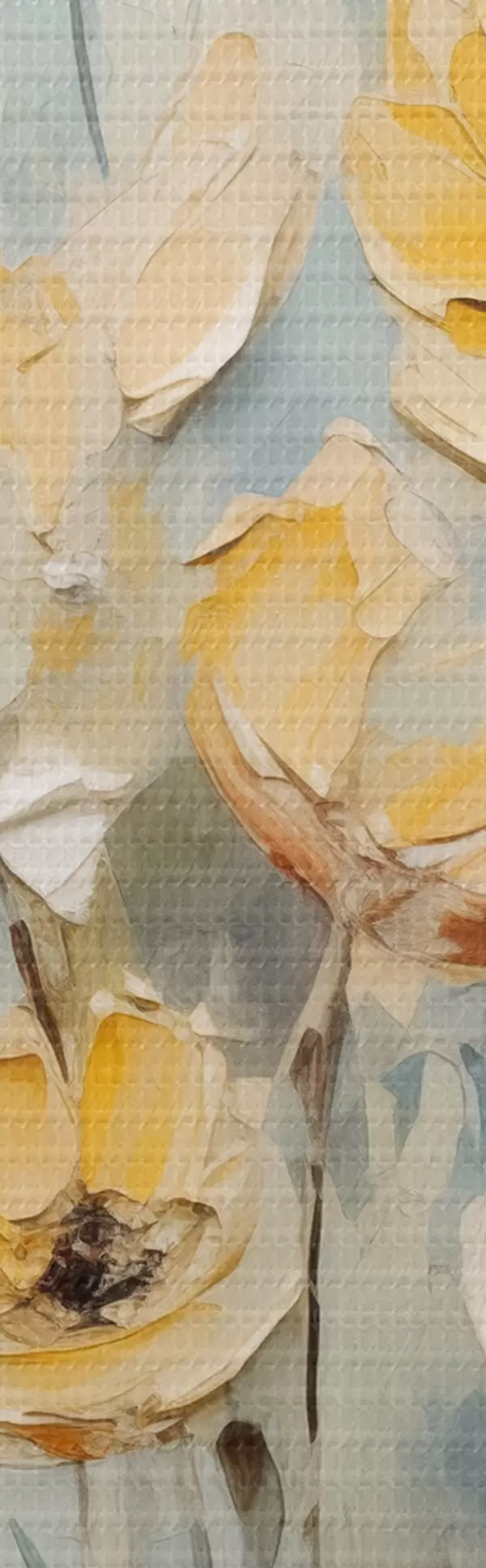 Trois types de matériaux peuvent être commandés : Economic Canvas - matériau dense et durable pour l'impression numérique, identique à la toile de peintre, surface imperméable, reproduction réaliste des détails, matériau à grain moyen. Premium Canvas - la texture ressemble à celle d'une toile de peintre (petits fils entrelacés). Reproduction douce et détaillée de l'image sur une surface mate. Eco-Premium - tissu 100 % coton de haute qualité. Grâce aux fibres naturelles de coton, le matériau est durable et résistant à l'usure. Excellente reproduction des couleurs et des détails.