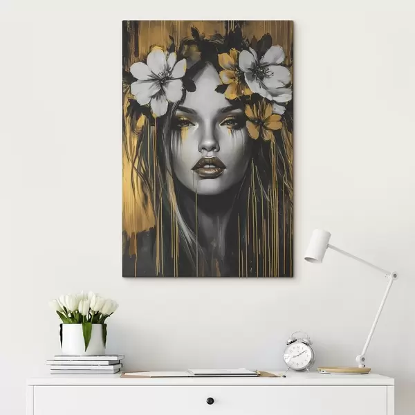 Peinture Portrait abstrait d'une femme avec des fleurs Art. s46454