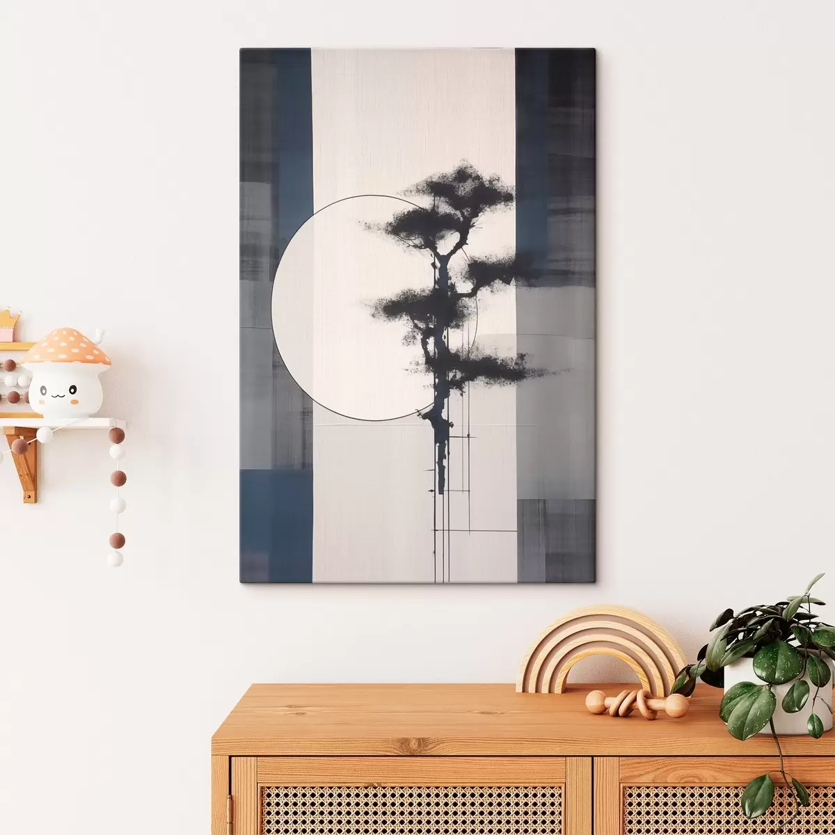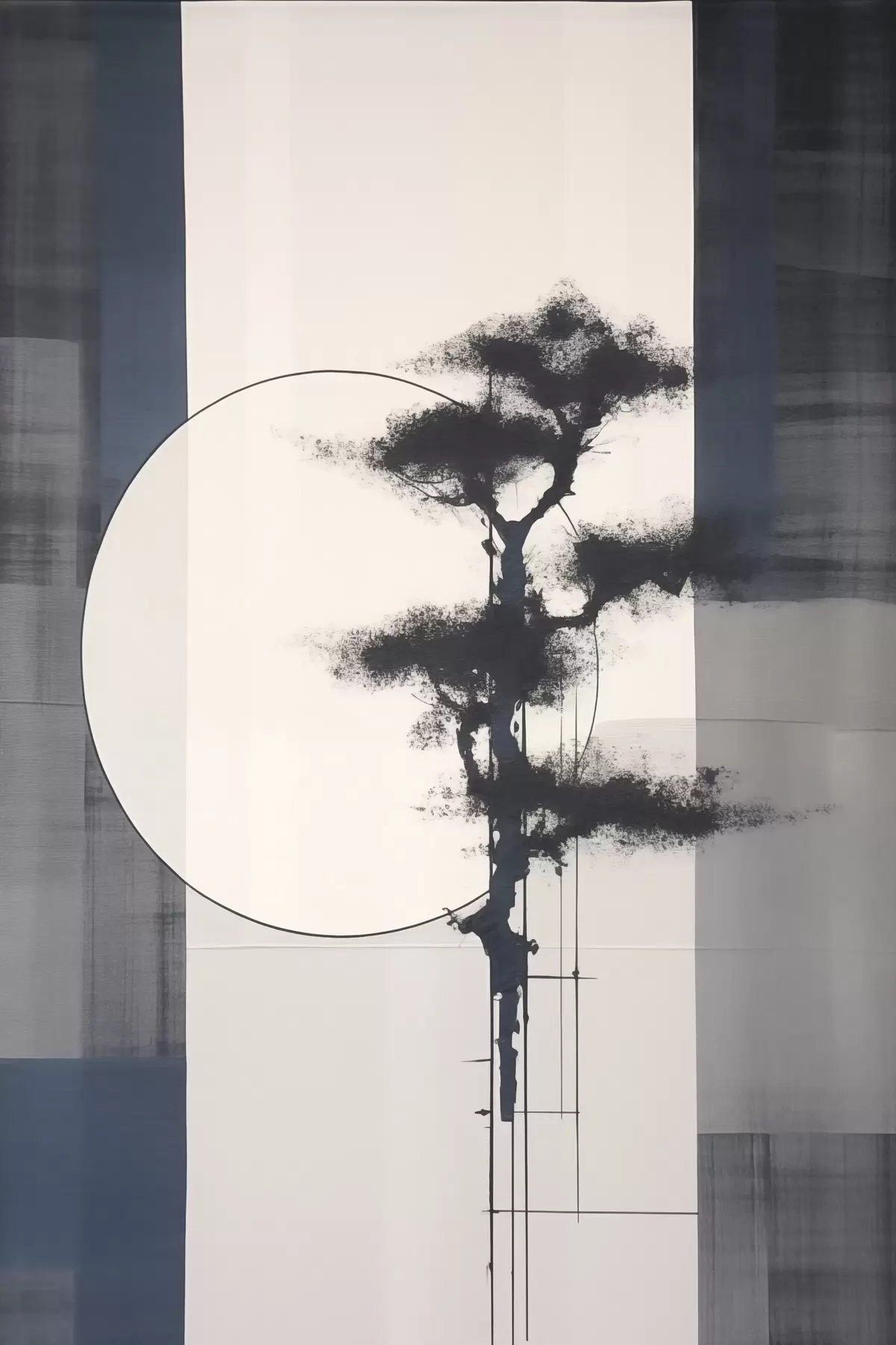 Peinture Abstraction. Arbre et soleil. Minimalisme japonais Art. s46463
