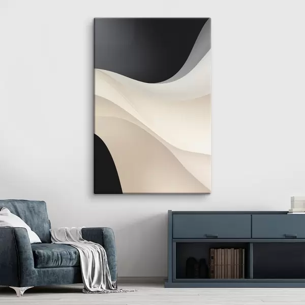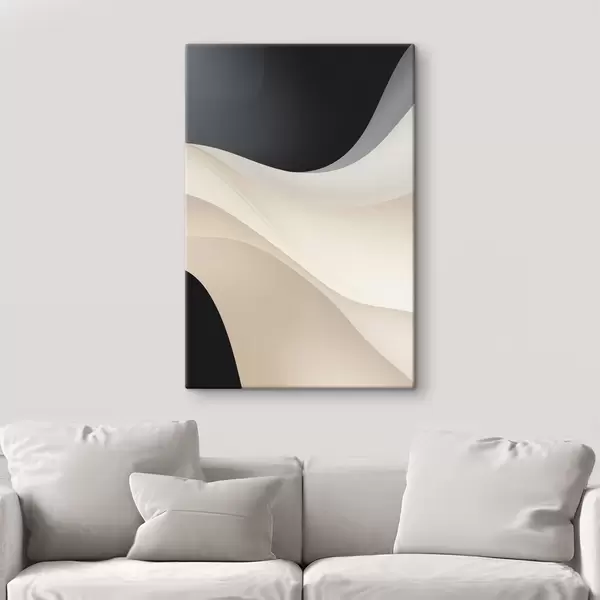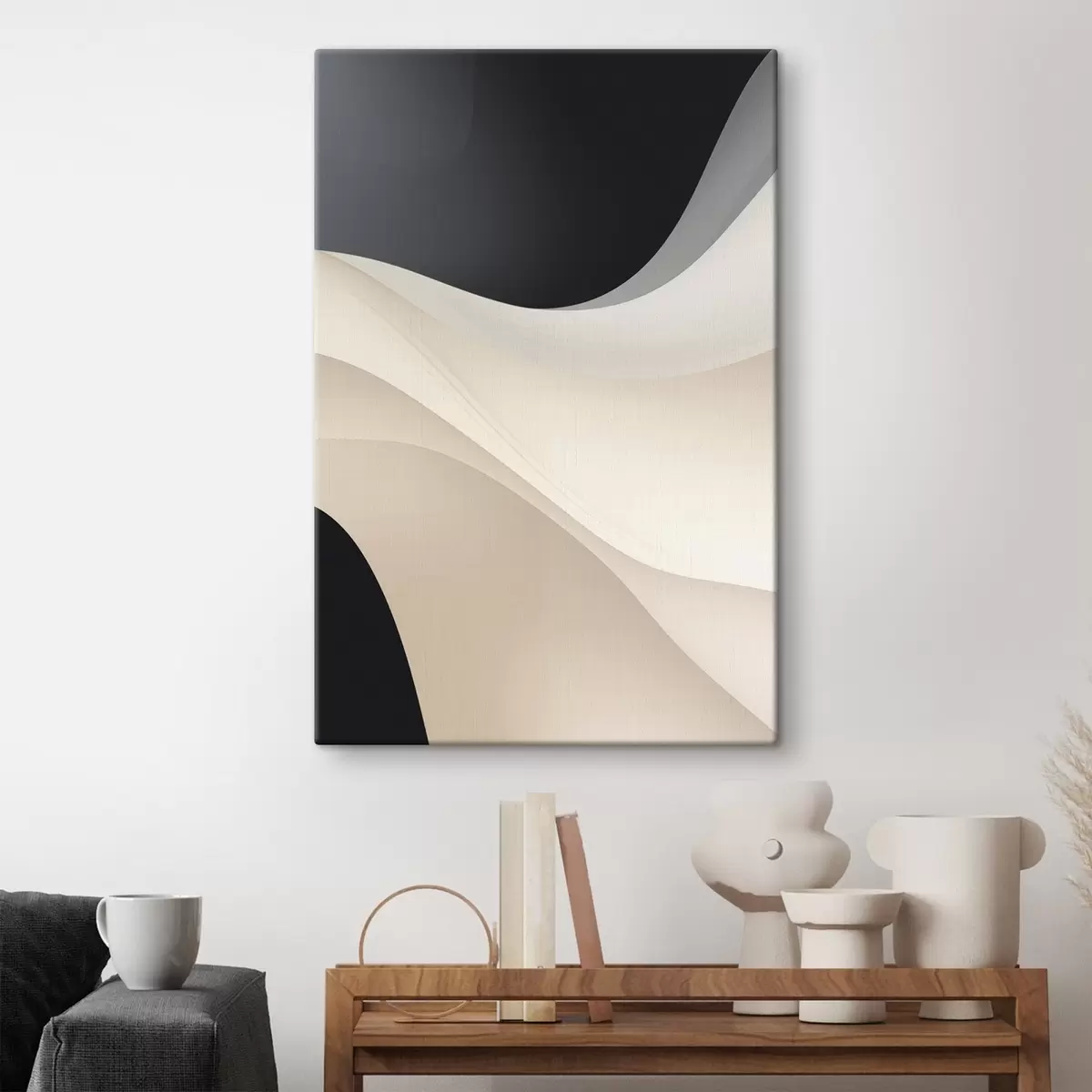 Peinture Courbes fluides superposées en noir, crème et taupe Art. s46492