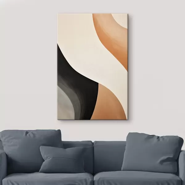 Peintures Courbe en S audacieuse dans des tons crème, noir et terracotta s46495