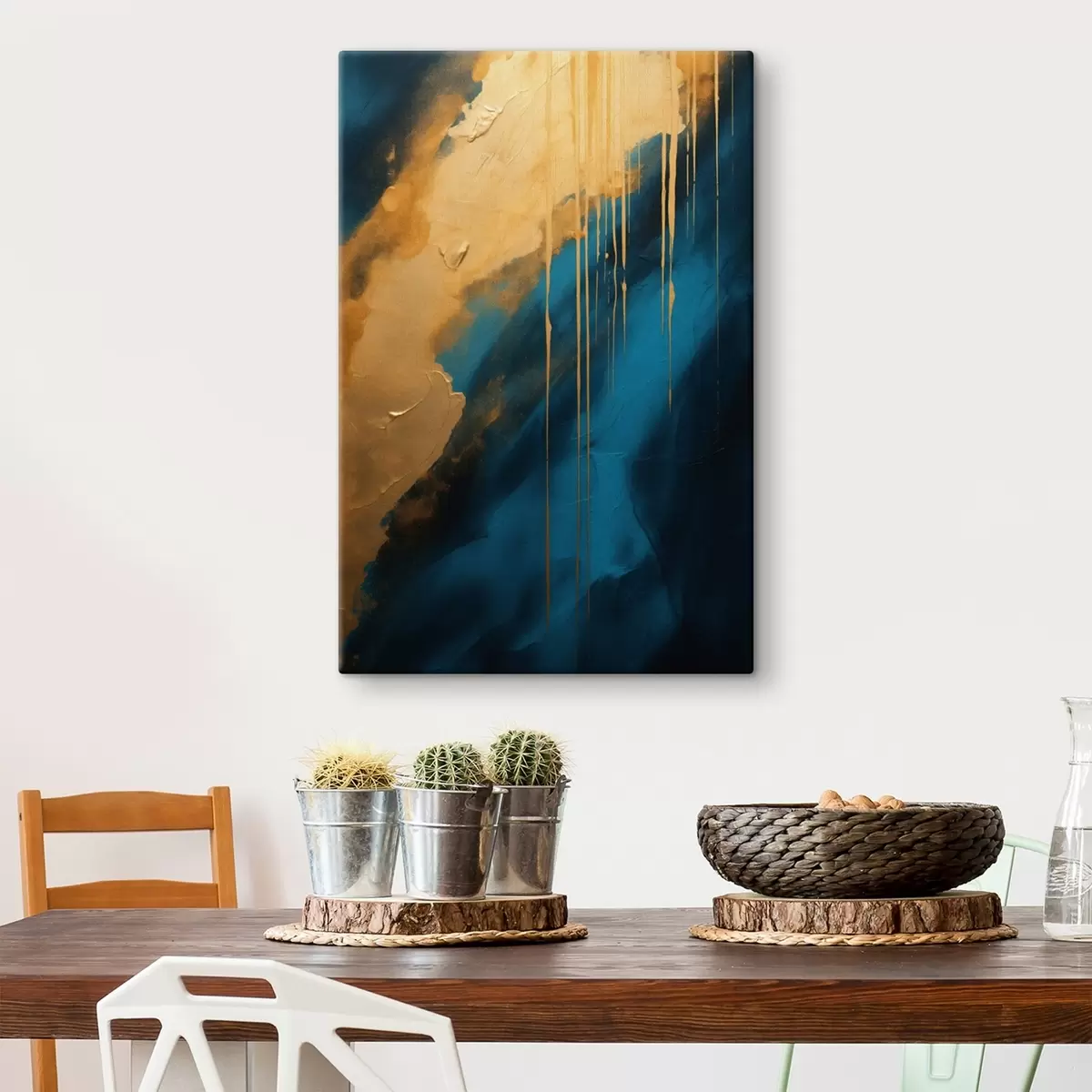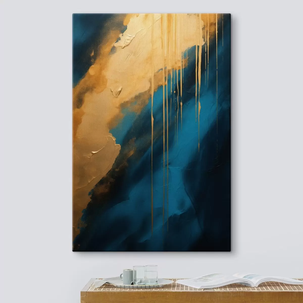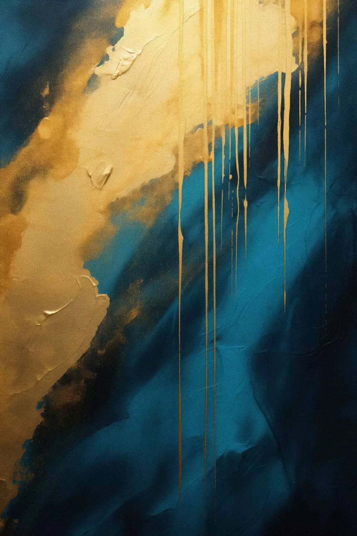 Peinture Abstrait bleu sarcelle et bleu foncé avec des reflets chauds fluides Art. s46509