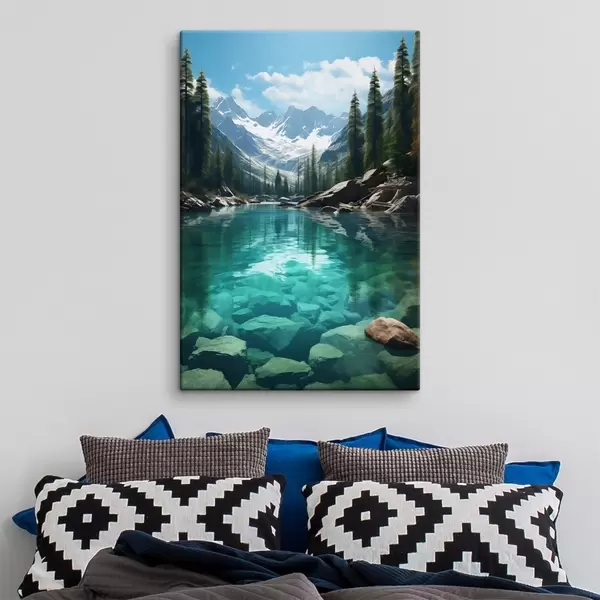 Peintures Rivière alpine limpide avec lit rocheux et sommets enneigés s46514