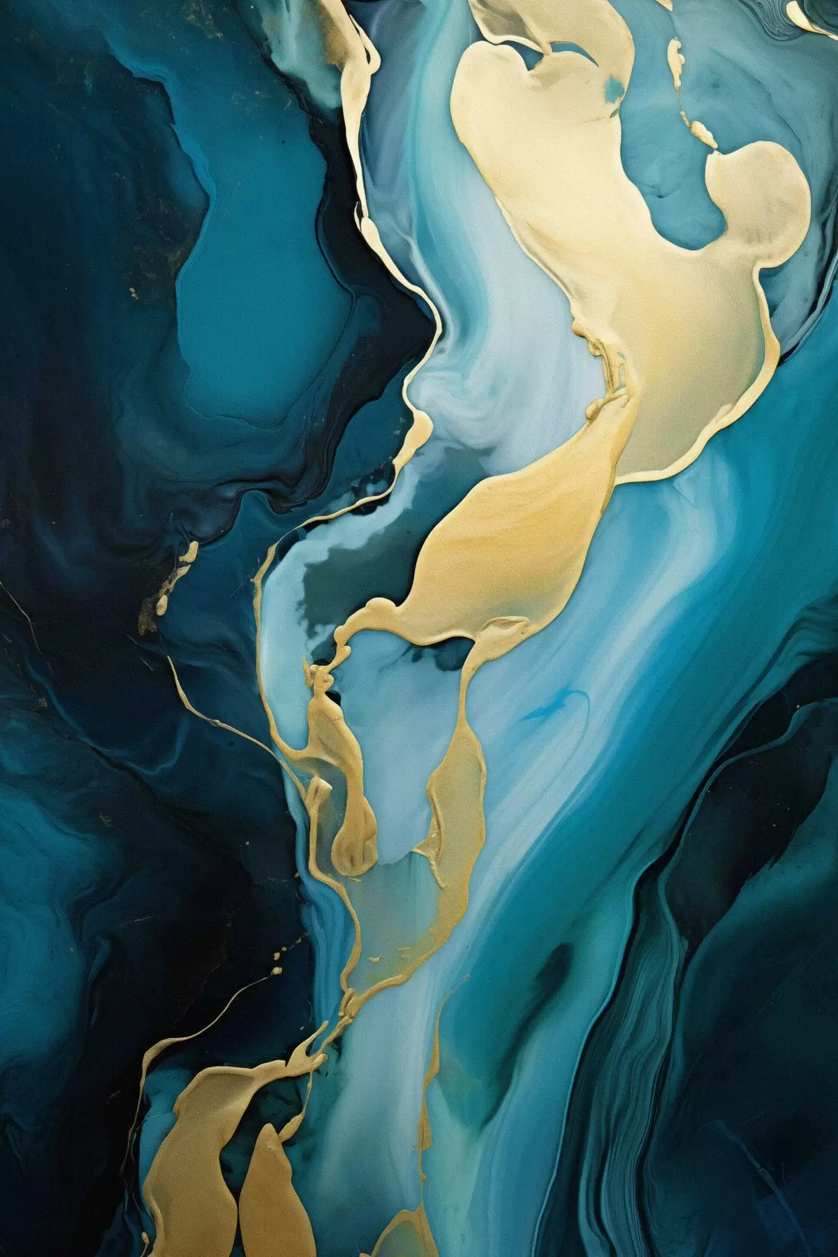 Peinture Abstrait bleu sarcelle avec un trait ocre Art. s46530