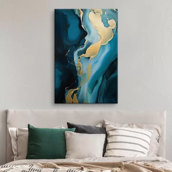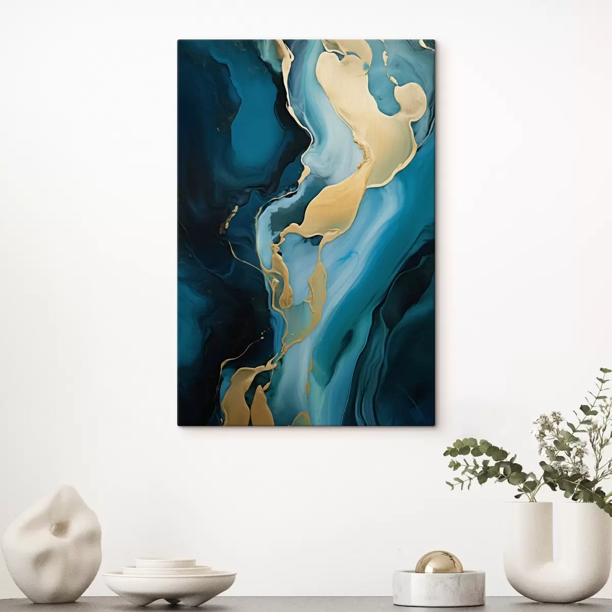 Peintures Abstrait bleu sarcelle avec un trait ocre s46530