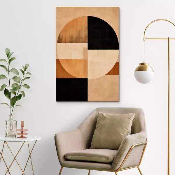Peintures Demi-cercles et carrés aux tons chauds, texture douce s46531