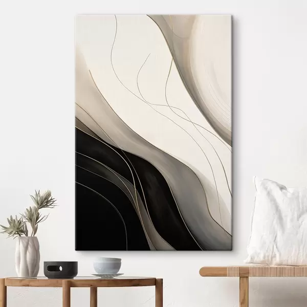 Peintures Vagues noires et beiges avec de fines lignes ocres s46541