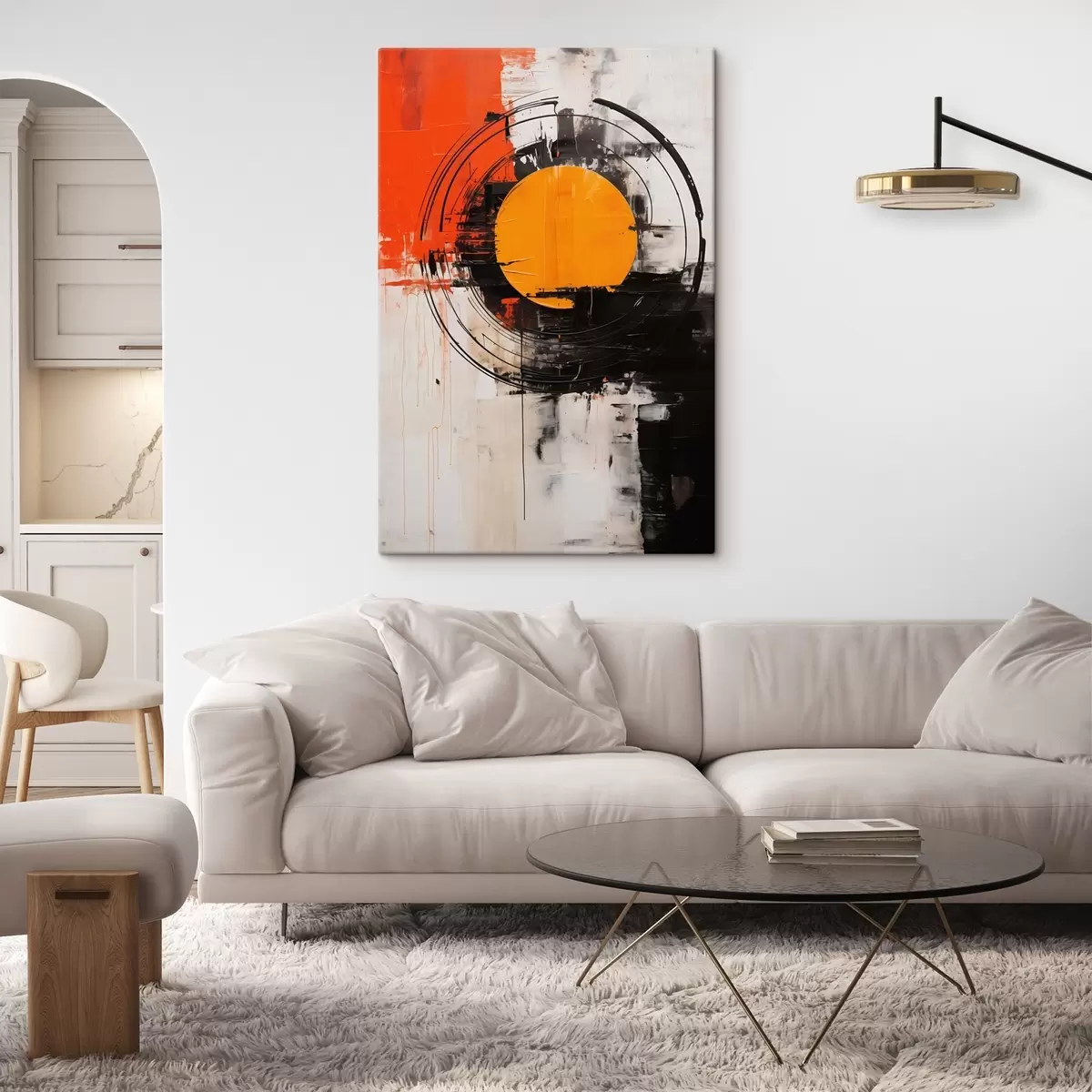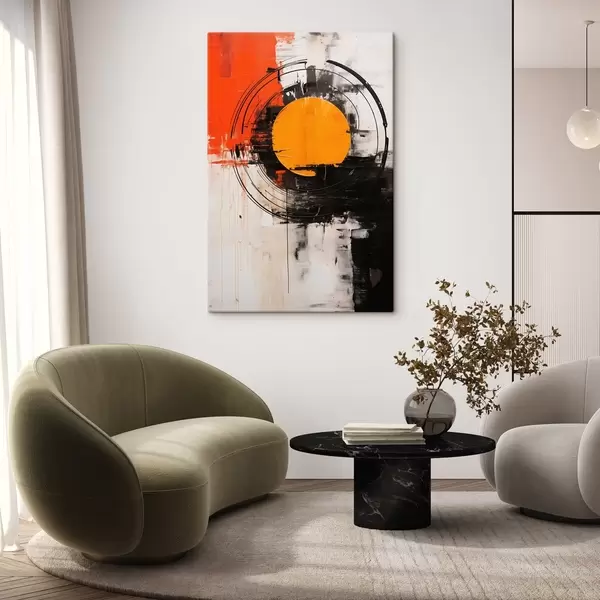 Peintures Disque orange dans un anneau noir, traits et éclaboussures s46550