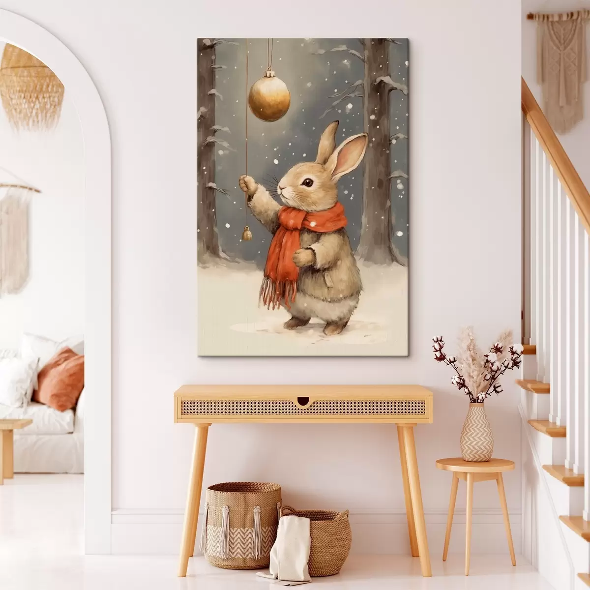 Peinture Lièvre d'hiver avec écharpe et boule de Noël Art. s46619